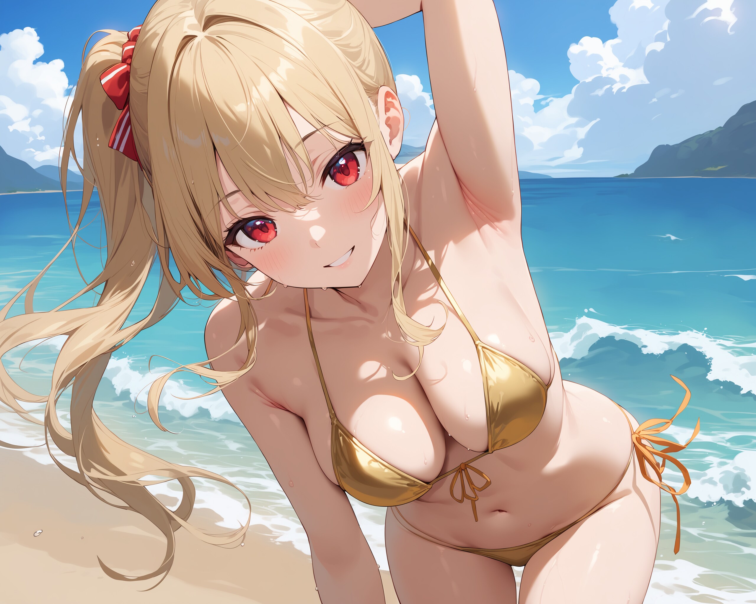 太陽といえば夏、夏は海、ビーチ、とくれば、ビキニの女の娘♪