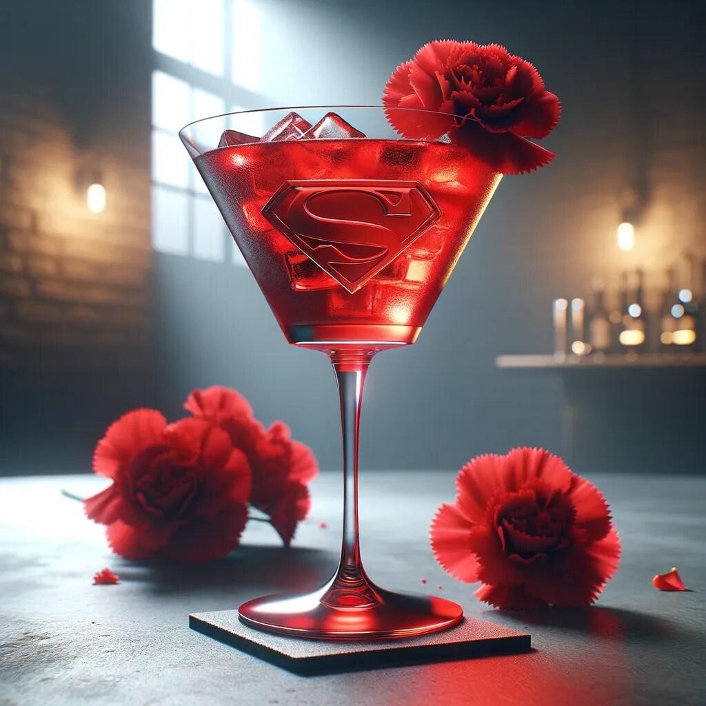 このカクテルは、ヒーローの勇敢さと力強さを色と味で表現し、特別な体験を提供します。スタイリッシュなモダンカクテルグラスに注がれた、鮮やかな赤色のカクテルは、勇敢さと力強さを象徴。レッドカーネーションまたは赤いフルーツスライスのガーニッシュが、ヒーローの象徴的なイメージを表現しています。