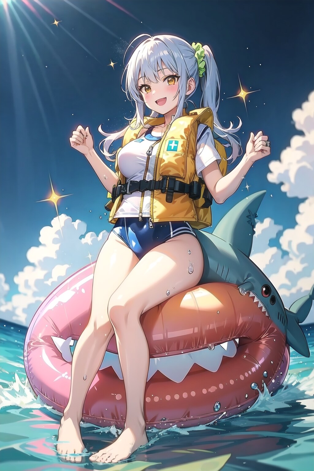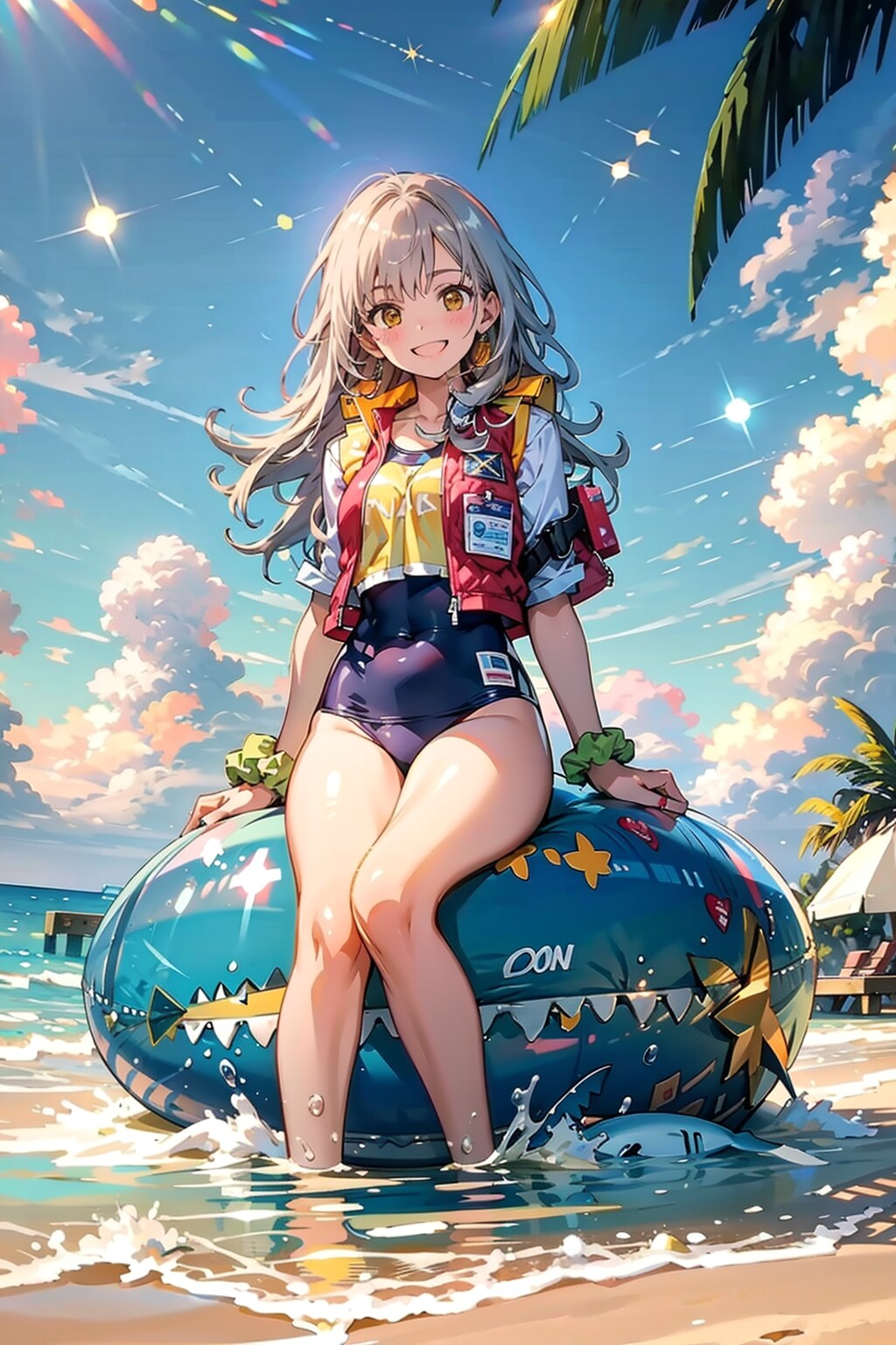 遊びながらもライフジャケットは忘れません。お相手は海の監視員さん20歳。