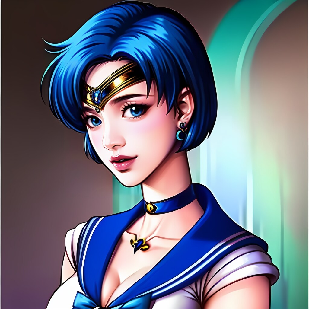 セーラーマーキュリーの優雅な姿は、天野喜孝の作品にぴったりとマッチします。彼女の知識と知恵を象徴する水色のセーラー服が、彼の独特なタッチで描かれます。彼女の周りには、水のような透明感のある絵画的な背景が広がります。