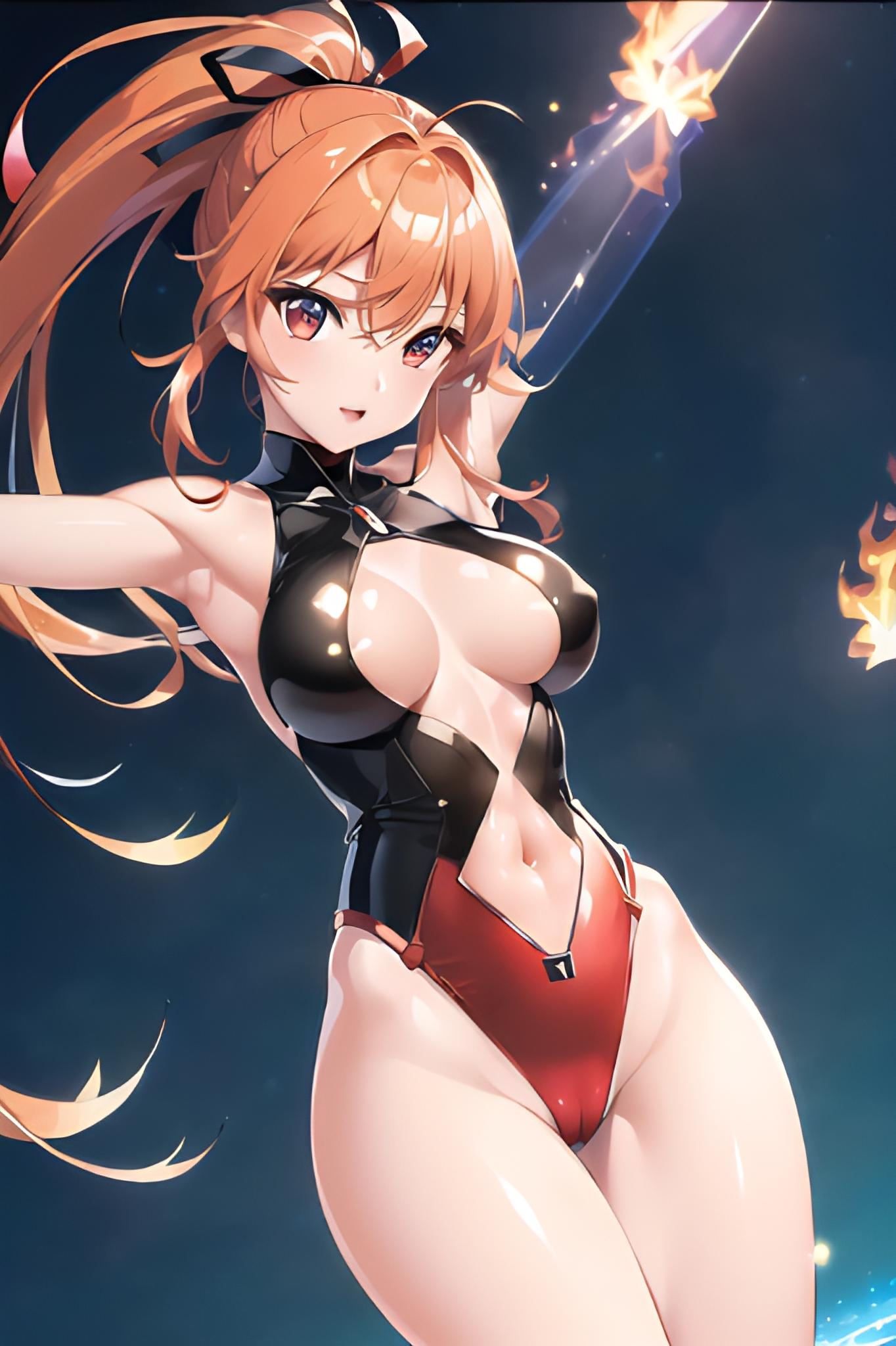 12枚目はscale18.3とstep29で他は11枚目と全く同じプロンプト、唯一leotardのところの透けのハイフンが2つ重なってて消したらこうなった