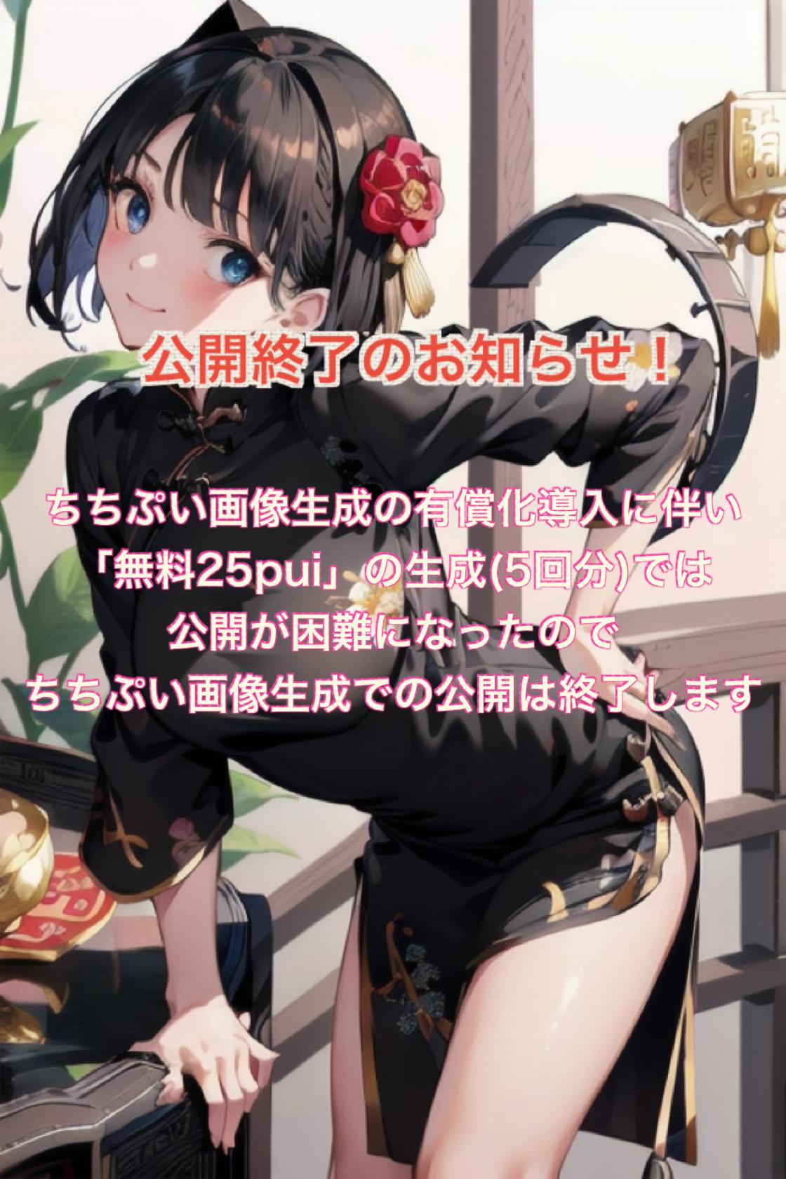 ちちぷい画像生成の有償化導入に伴い「無料25pui」の生成(5回分)では公開が困難になったのでちちぷい画像生成での公開は終了します!