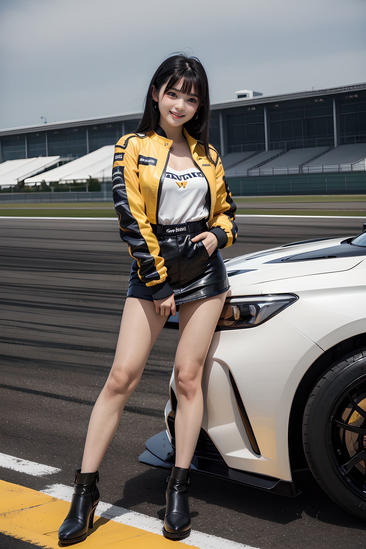 事前にネットで色々とレースクイーンの写真を見ていて、カラフルな可愛い衣装にワクワクしていたのですが、実際は阪神タイガースみたいな色でした😅