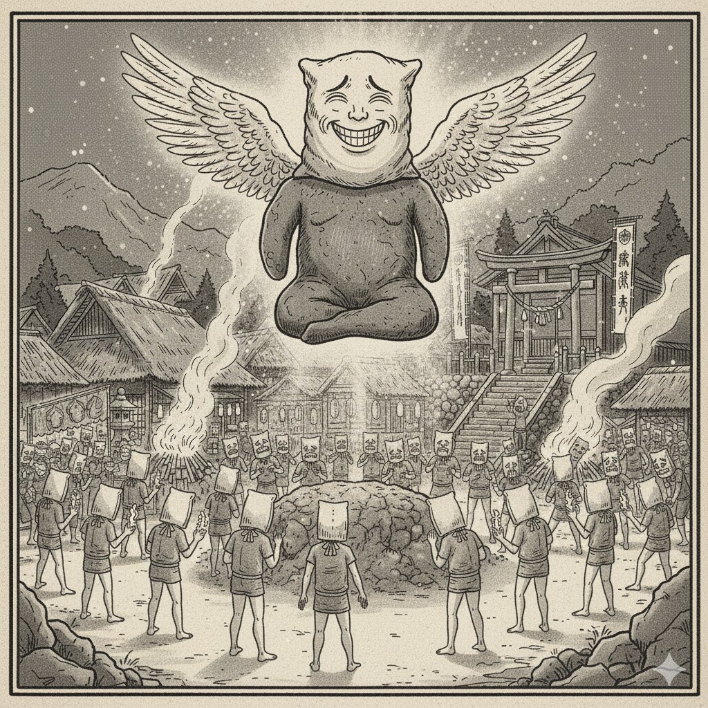 新たな麻袋土偶が麻袋村に繁栄と恵みを与え、厄災から護らんと、