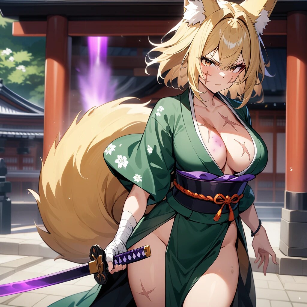 このお狐様は進んで喧嘩するタイプではないのですが、SDXL移行していろいろ試したいところだったのでそれも兼ねての参加としました。(私がちまちま書いてるこの狐にかかわるストーリー上としては刀が手元から無くなってる状態ですが企画参加エクストラモードということで)