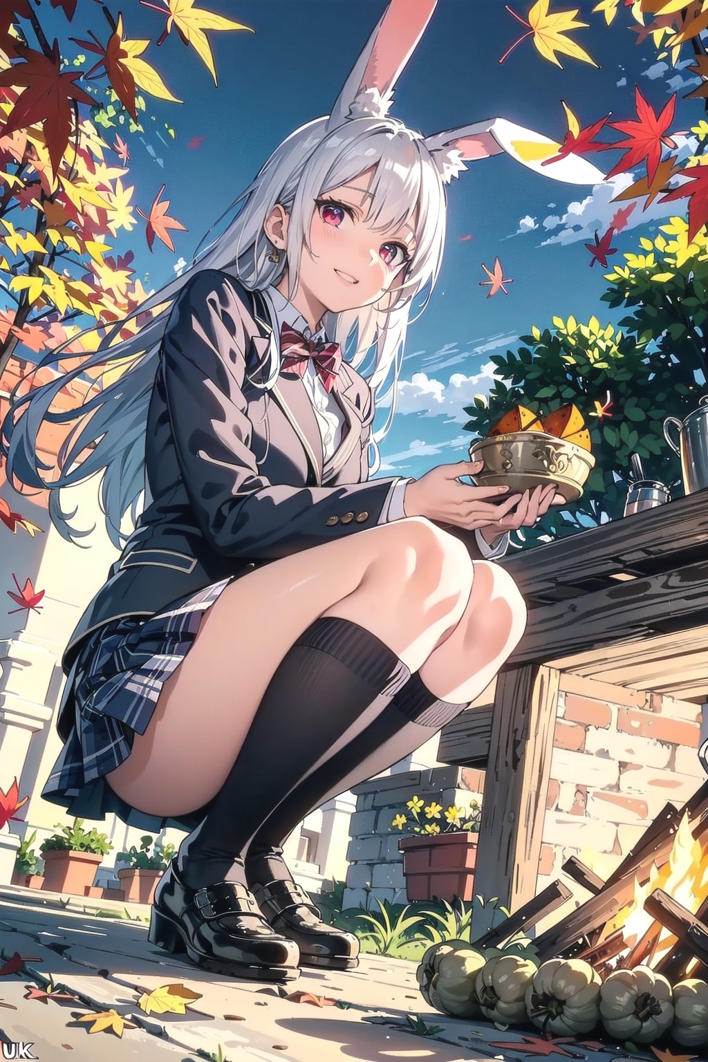 学校の中庭で焼き芋を焼くみみちゃん🐰
