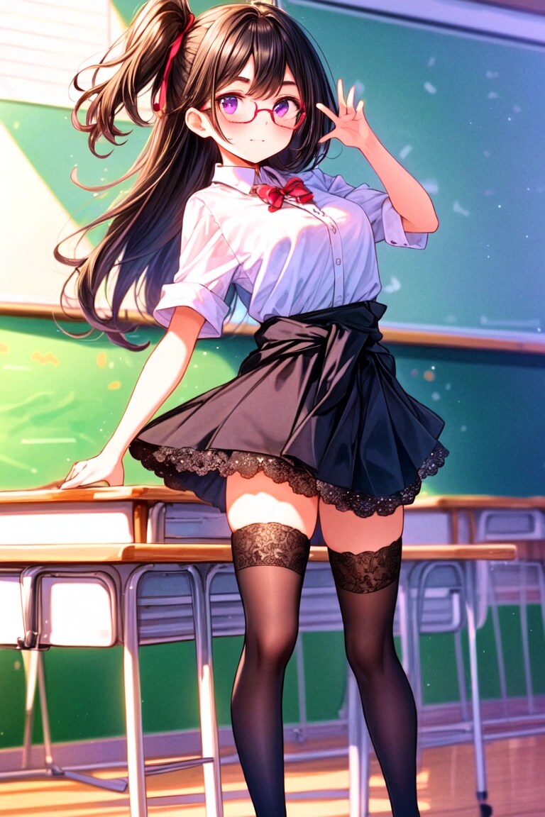 結果、机に座るなど、セクシー構図連発でなかなか全年齢なイラストが出てこなくて苦労しました…。一体なんの先生なんだ…?なイラスト多数で、AIに対しての謎がまた深まりました…。とりあえずいい先生のようなポーズをとっている作品がなんとか出たのでよかったです!!3枚目は先生感ないかもしれませんが、入れておきます。