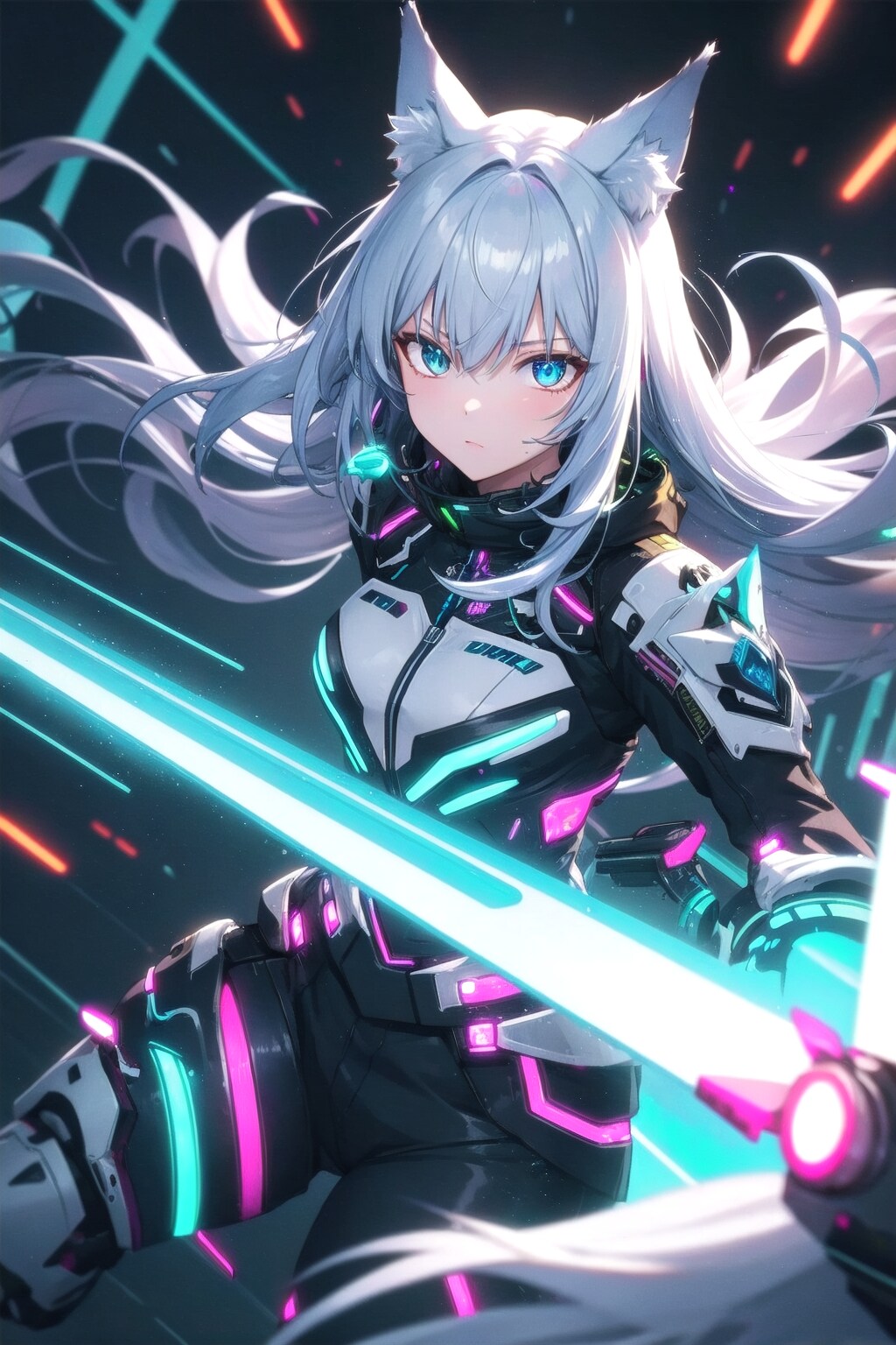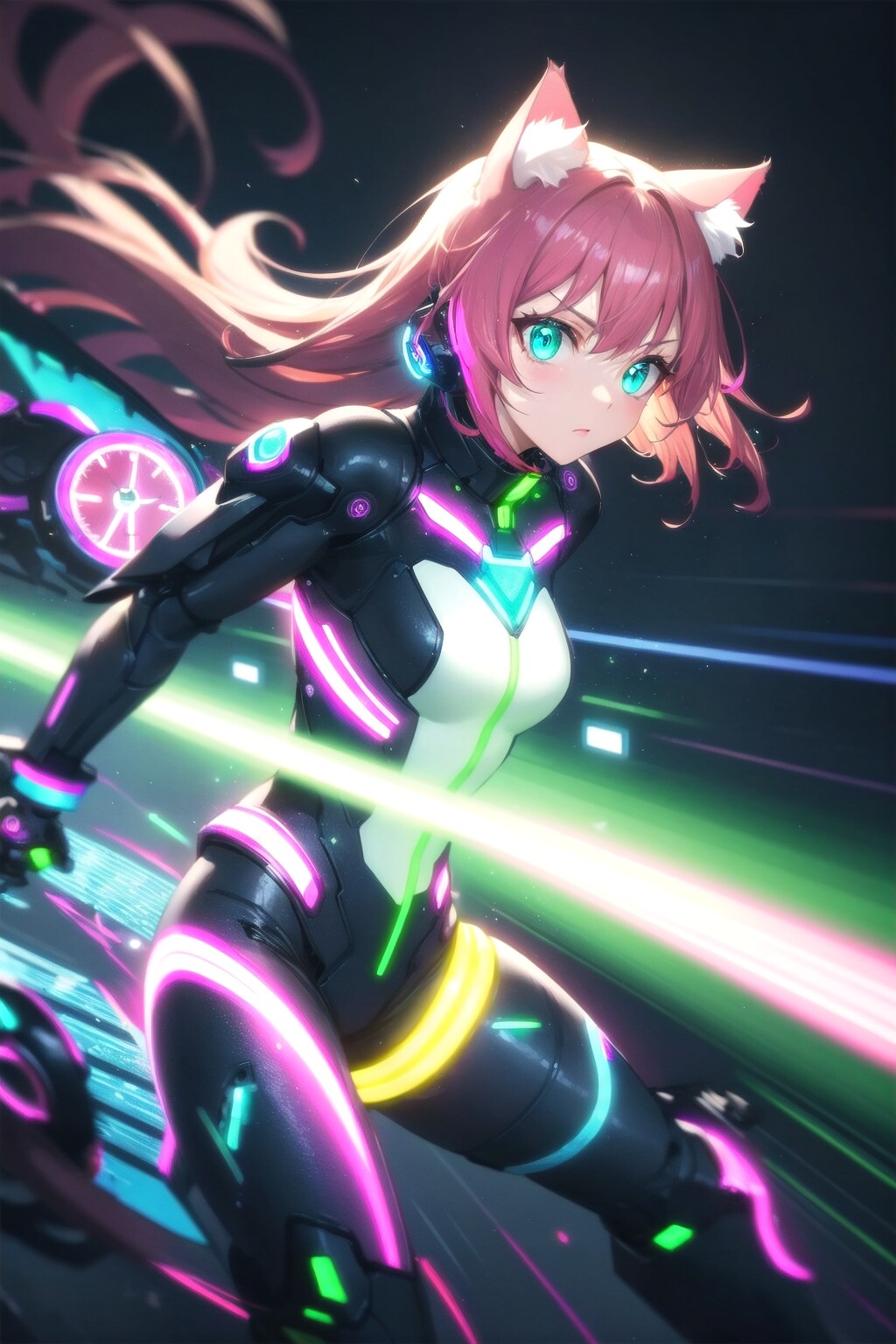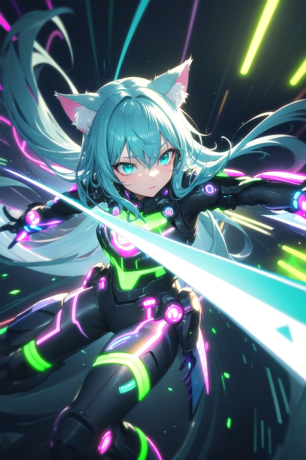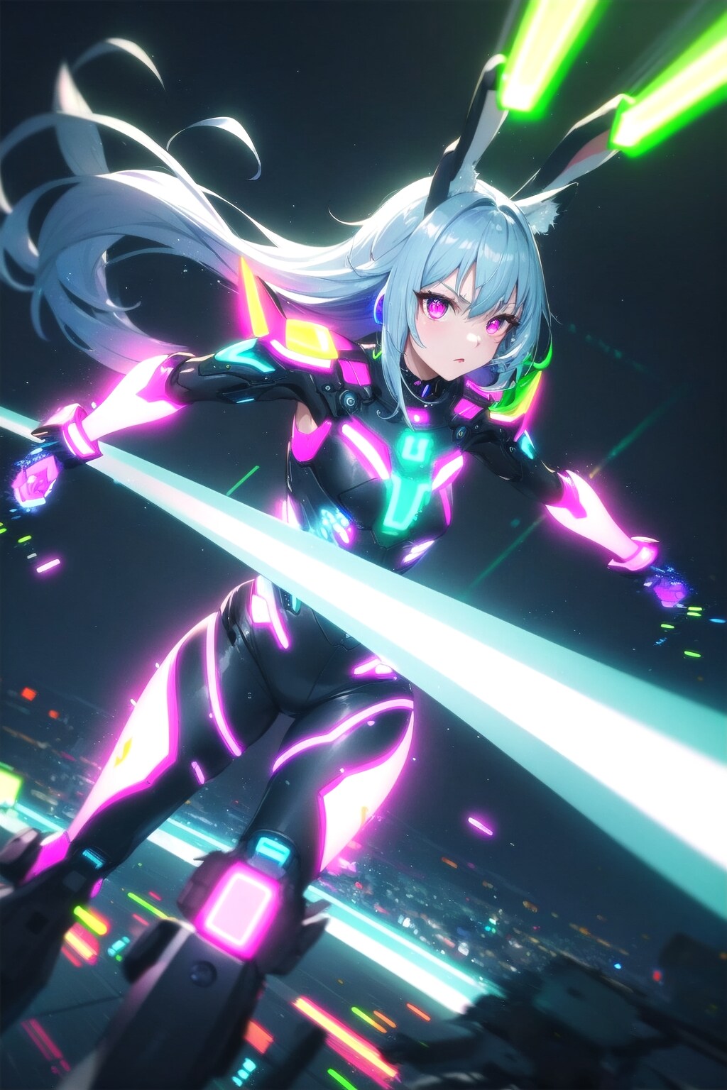 サイバーパンクのうちの子に長時間露光を付け足すと、V4Bでもビームを発射してるように見える✨