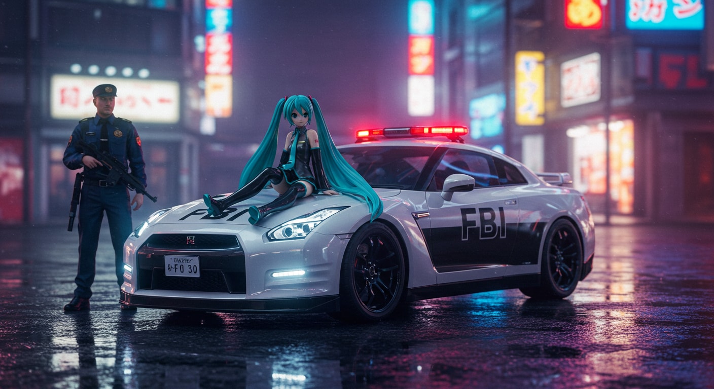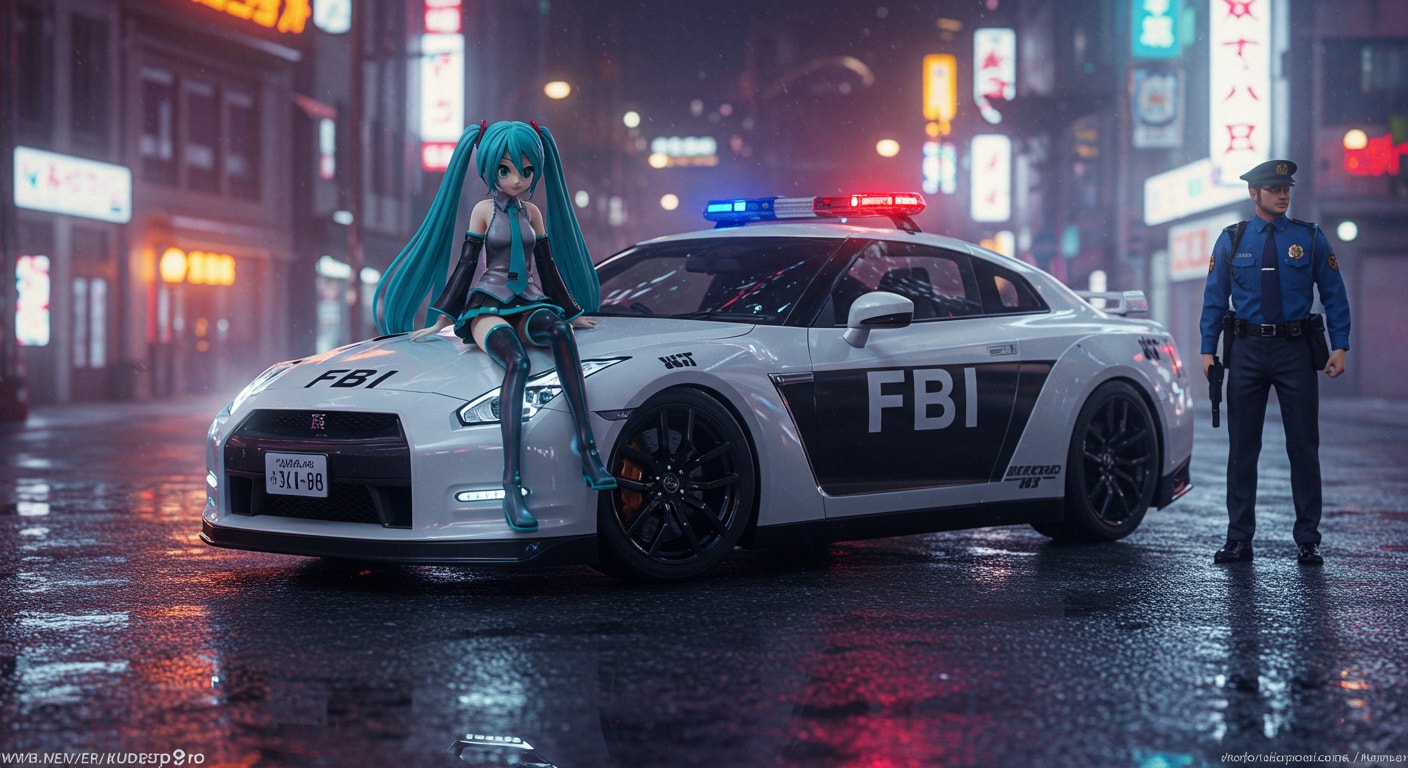 初音ミクとFBI GT-Rパトロールカーのドリ車