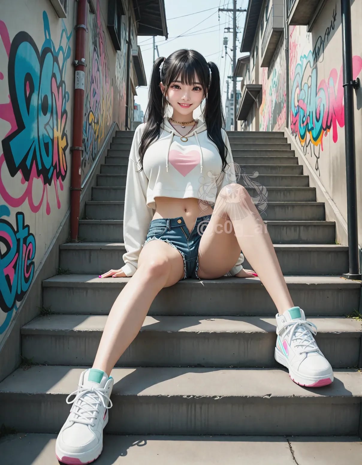 Hinana slaying in a cropped hoodie, low-rise short shorts, and chunky-cute sneakers 💖