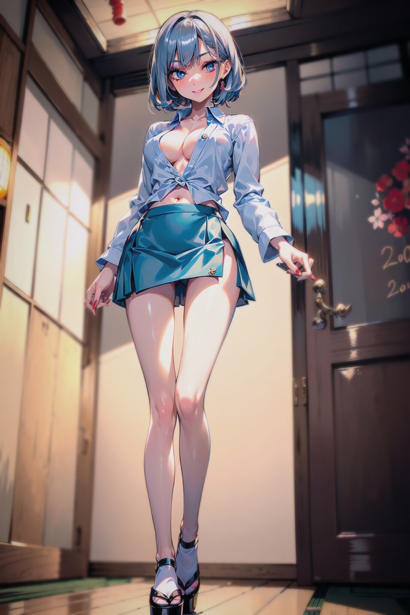 同じプロンプトだけど、やっぱりV4Bやイラストは強力だよ。脚の見せ方や下アングルの角度も絶妙な再現性。なかなかすごい。でも、リアリティーは外せないし陰影の再現性はさすがでGood(na)