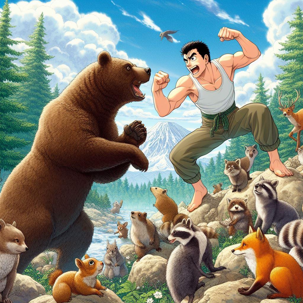 日本には金太郎っていう熊と格闘するファイターが居るらしいべ?見にいってみるべ?