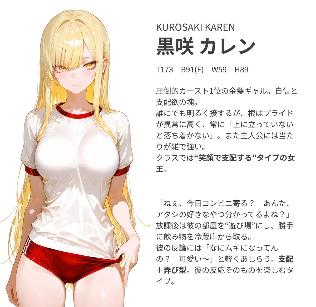 圧倒的カースト1位の金髪ギャル。自信と支配欲の塊。