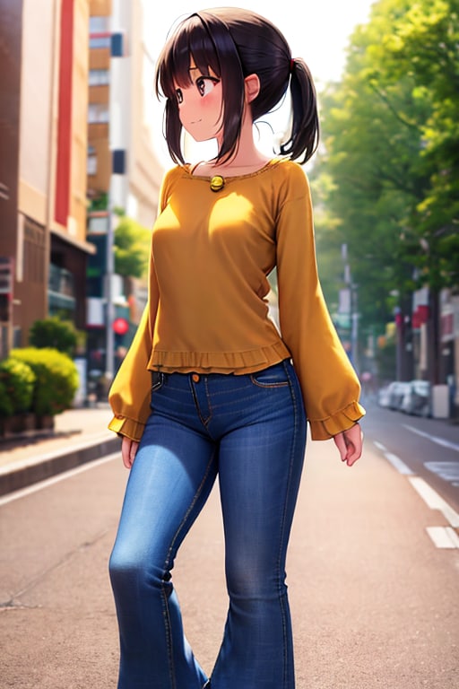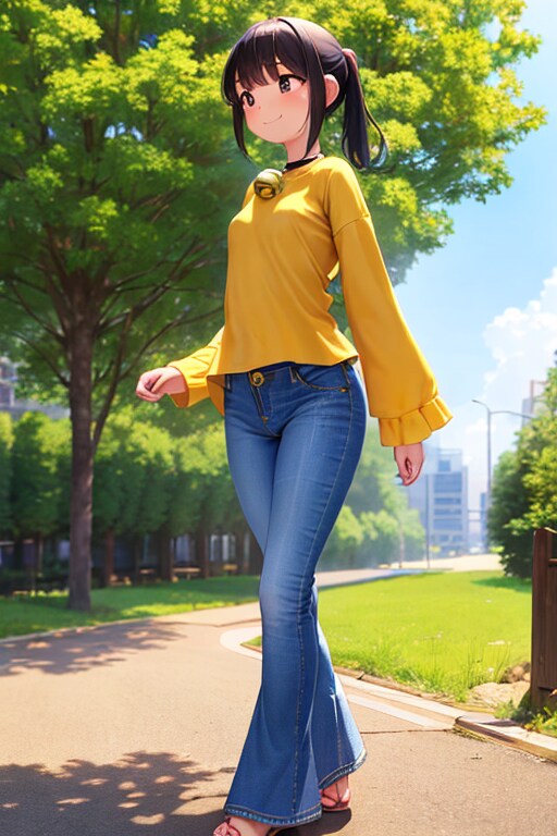 ちなみにベルボトム・ジーンズは膝下から足先に向かって裾が広がっているのが特徴のジーンズ。日本ではパンタロン、ラッパズボンなどと呼んでいた。なおブーツが履きやすい程度に広いものがブーツカット、より広いものがベルボトムになる。