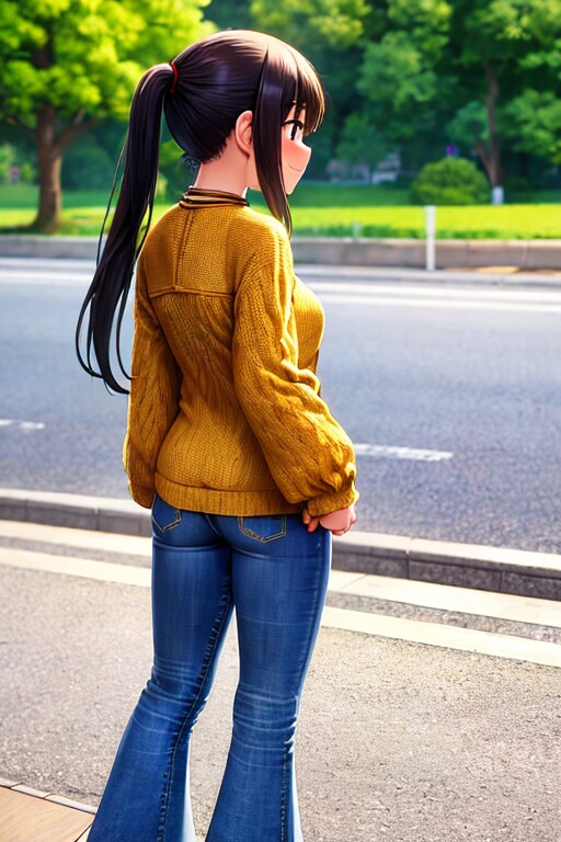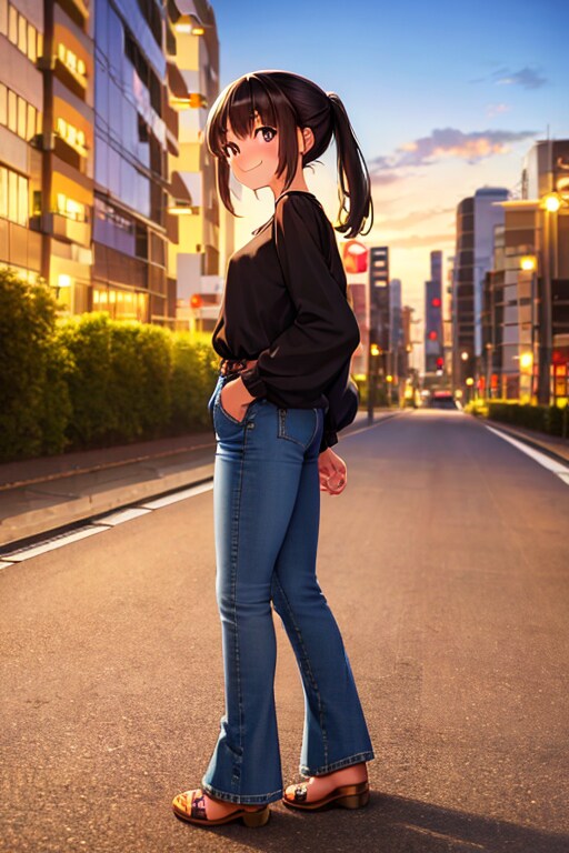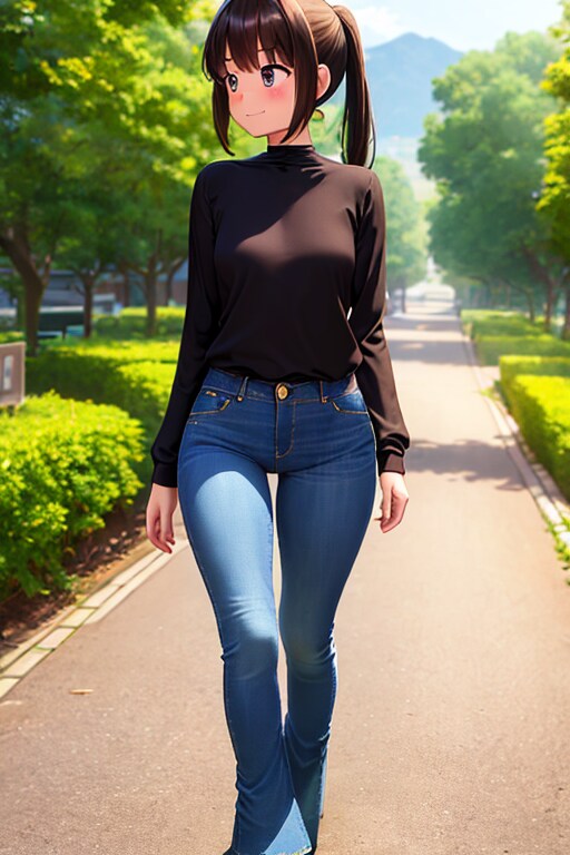 女の子はいつもの黒髪ポニーの茶瞳っ娘(お目々奇麗Ver)