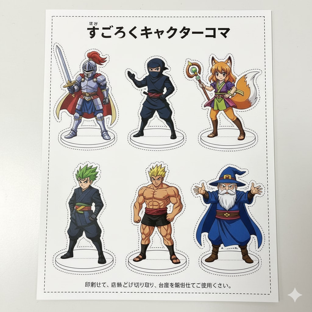 すごろくに使えるさいころ、コマ、マップ、イベント表などを印刷して切り取って遊べるものを想定して画像を生成してみよう。という企画を考えてます。