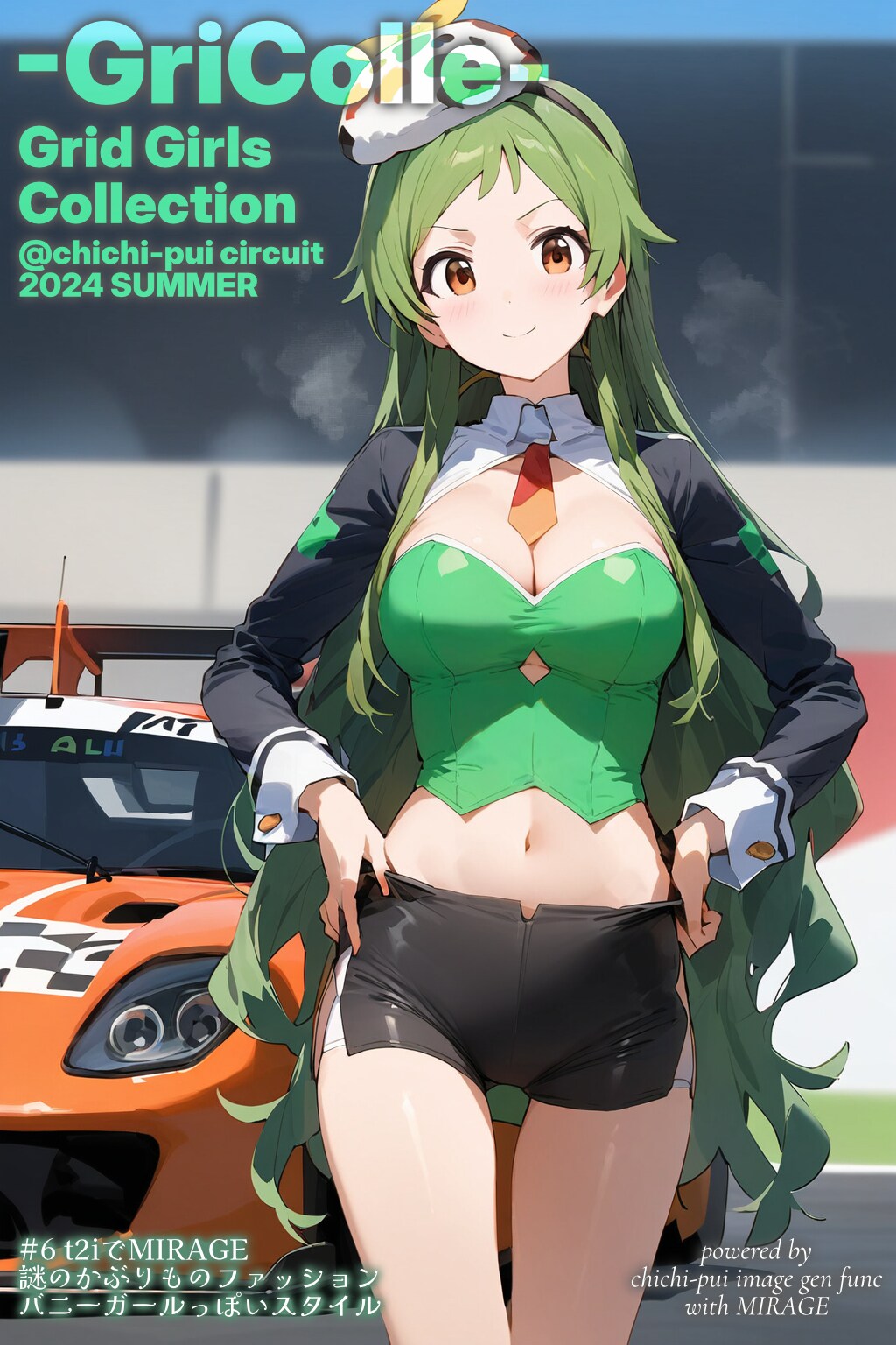 最近進化が続いているちちぷい生成機能、プロンプト欄の「レースクイーン」を選ぶと日本語が出ます。今回はここにキャラクターの外見情報を加えて、アイデンティティのあるキャラクターが再現できるかな...?というのを試してみました。