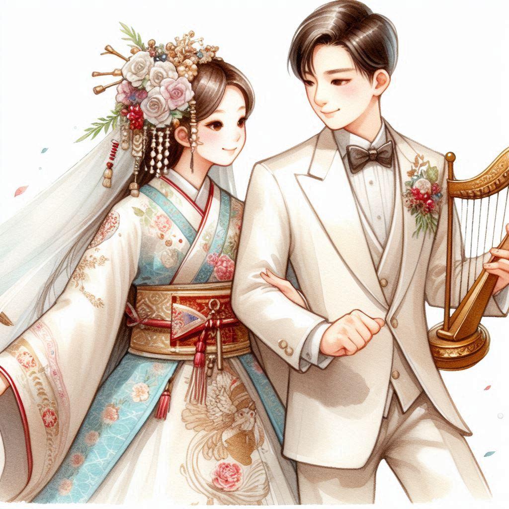 現代の人間と天女の結婚式