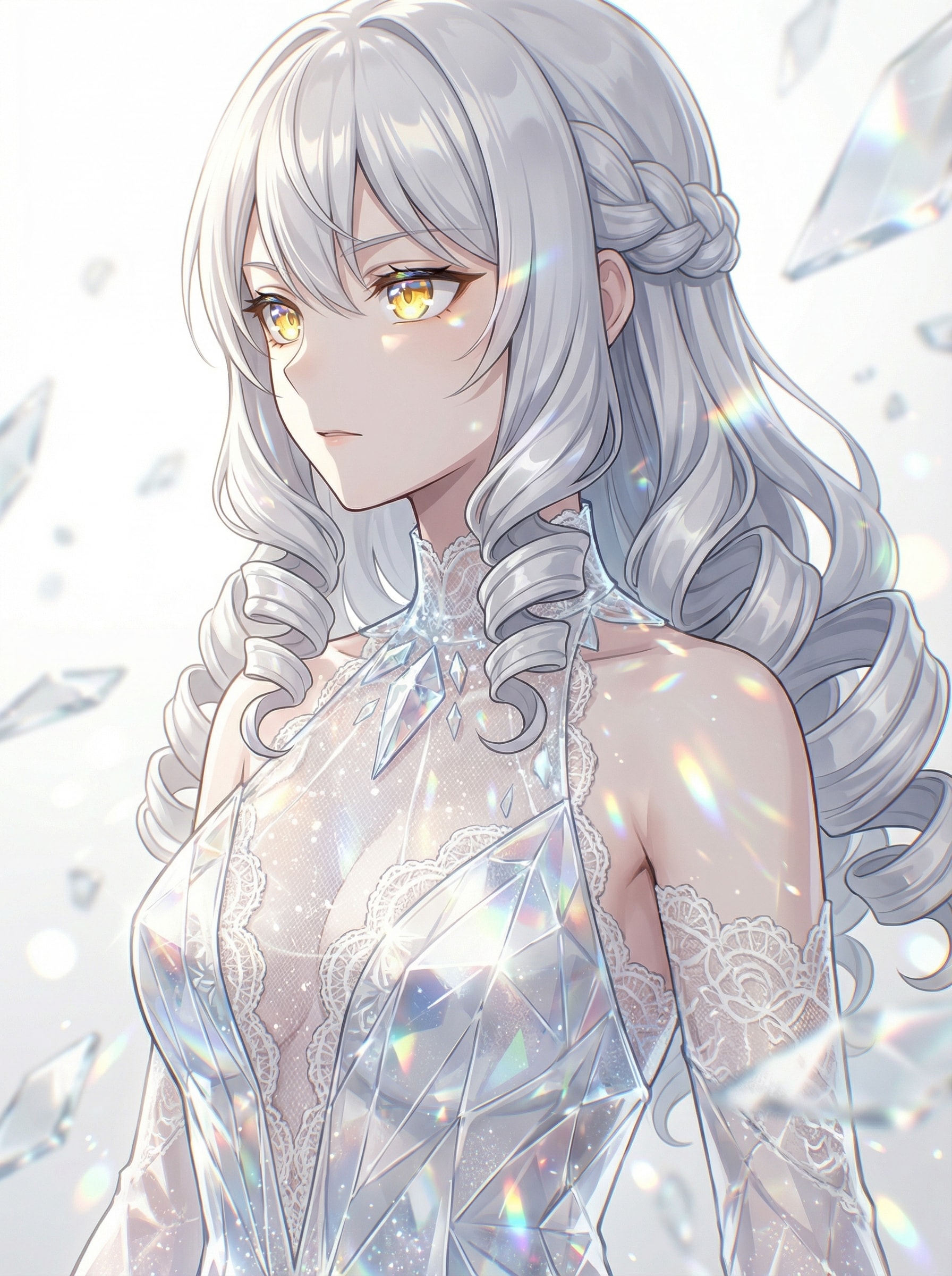 顔の造形はGeminiの参照画像機能で固定しているため完全な再現はできませんが、衣装や透明感のある世界観の参考にどうぞ。