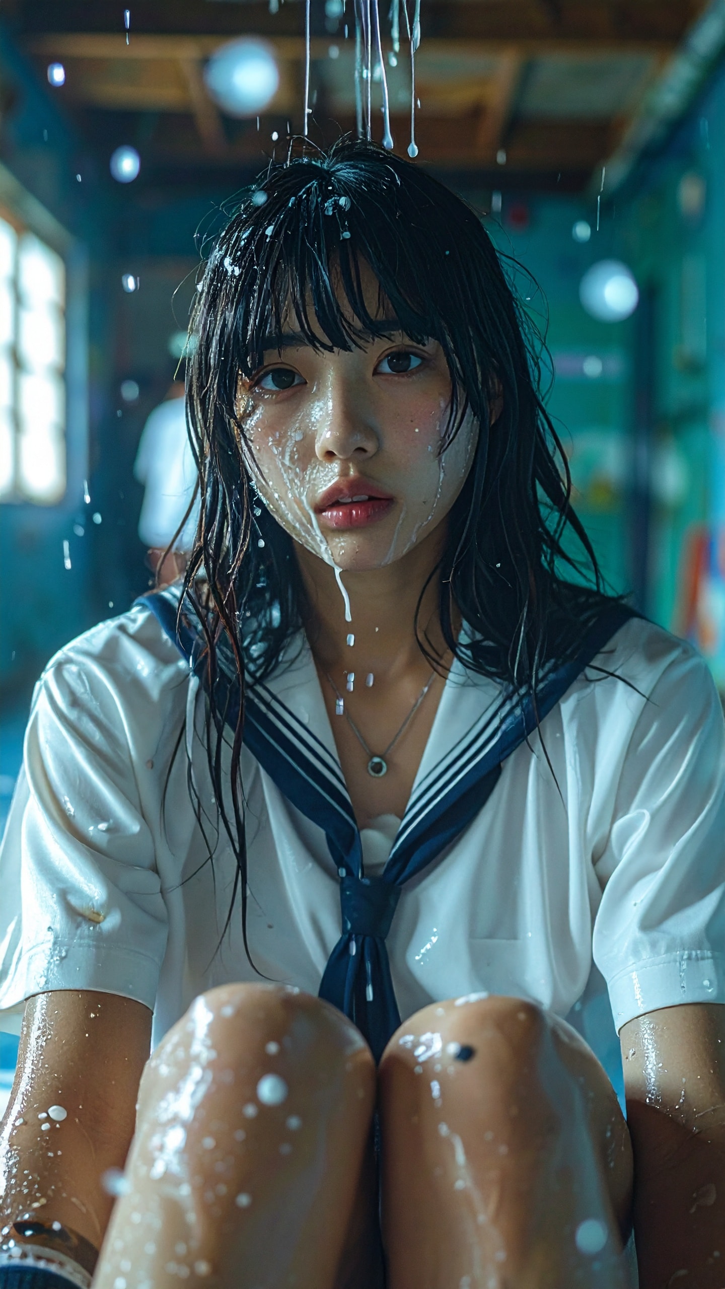 ミルク風呂で射精する巨根ふたなりちゃんたち