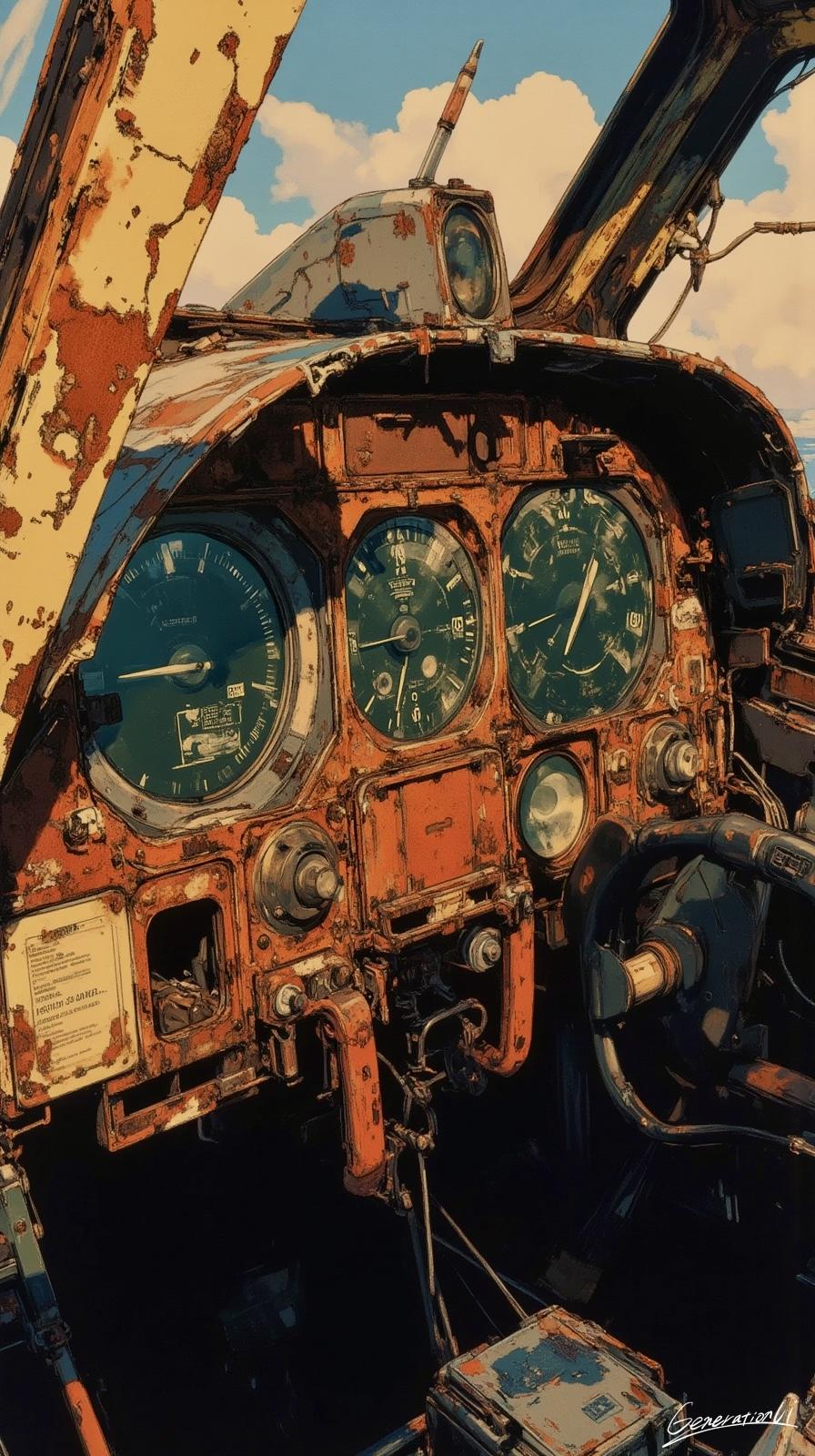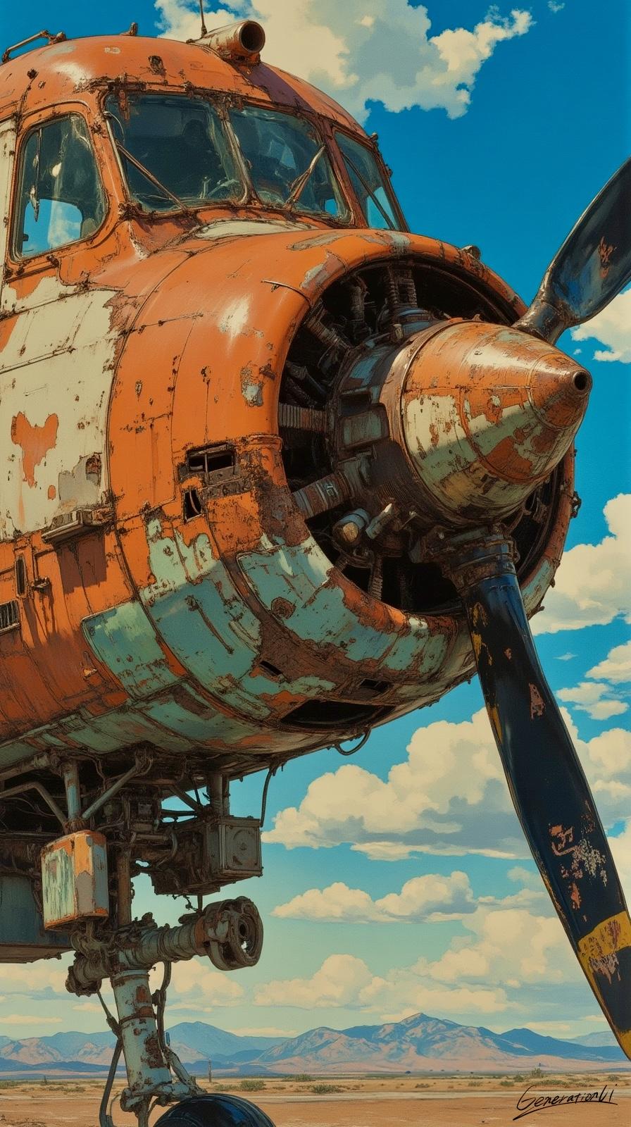 エンジンの奥で眠る錆の影が、最後のフライトの音を小さく囁く。
