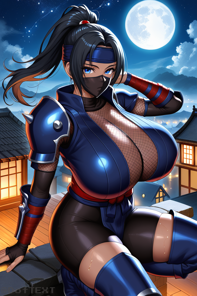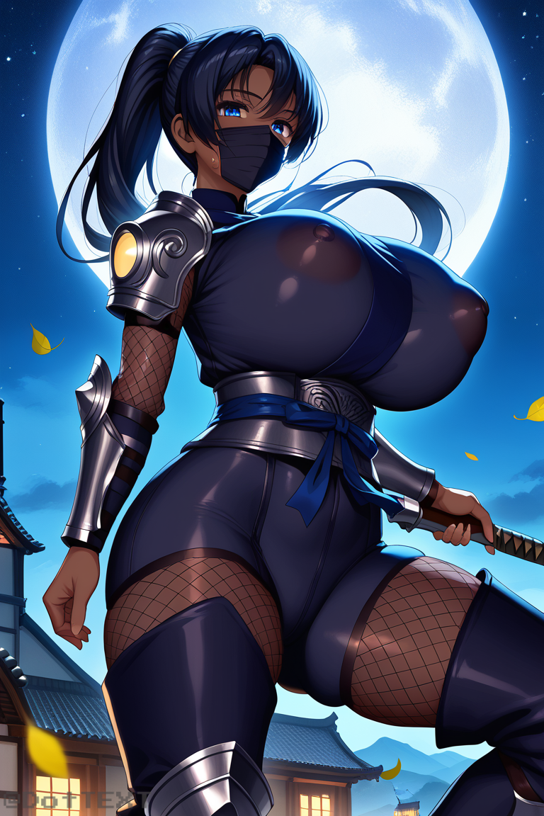 ポニーテールが跳ねる敏捷な忍者で、戦闘でズレ、デカ乳輪がチラ見え、忍らしい過激なエロさと戦闘力で敵を壊滅!