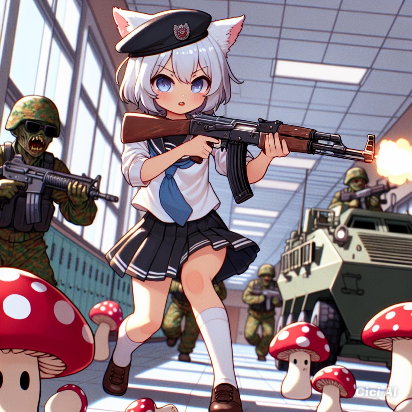 キノコゾンビと化したアミガルズの兵士を撃つ。
