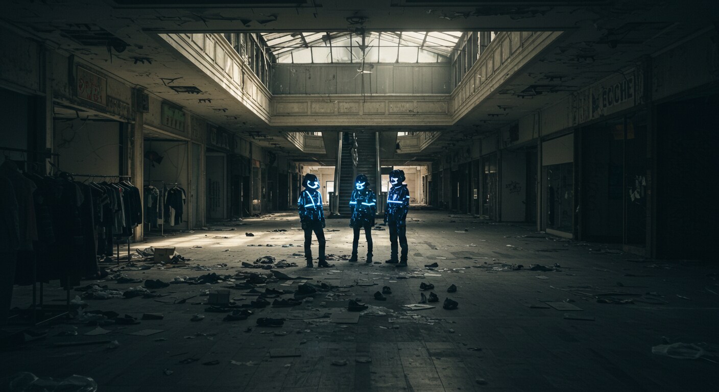 ショッピングモール 店内は完全に荒れ果て、商品のほとんどが朽ち果てています。食料品売り場には変質の兆候あり。災害用備品を示唆する物品が地下倉庫で発見されました。