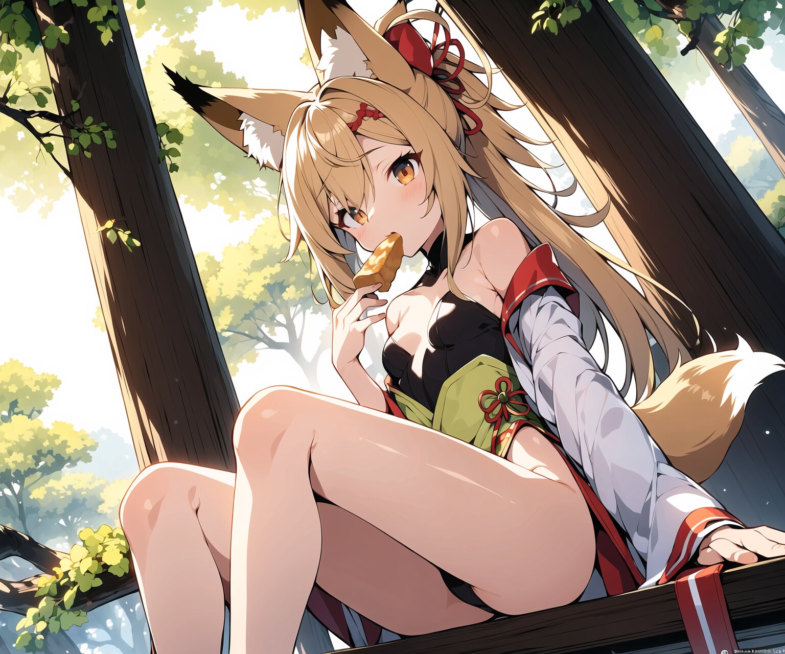 お仕事は物見櫓から遠方の異常を監視、外の見回りに出ている警備隊からの報せを受け取る、くらいなので携行用油揚げをつまみながらぼけーっとしていることが多い。