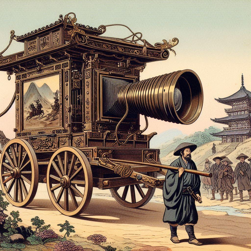 とくにダゲレオタイプや湿板写真というものは、写真機と一緒にその場で感光材料を調合したり撮影後に現像したりする設備が必須だったため、写真屋はそれら一式を馬や荷車に積んで移動した、ということが実際にあったようです。