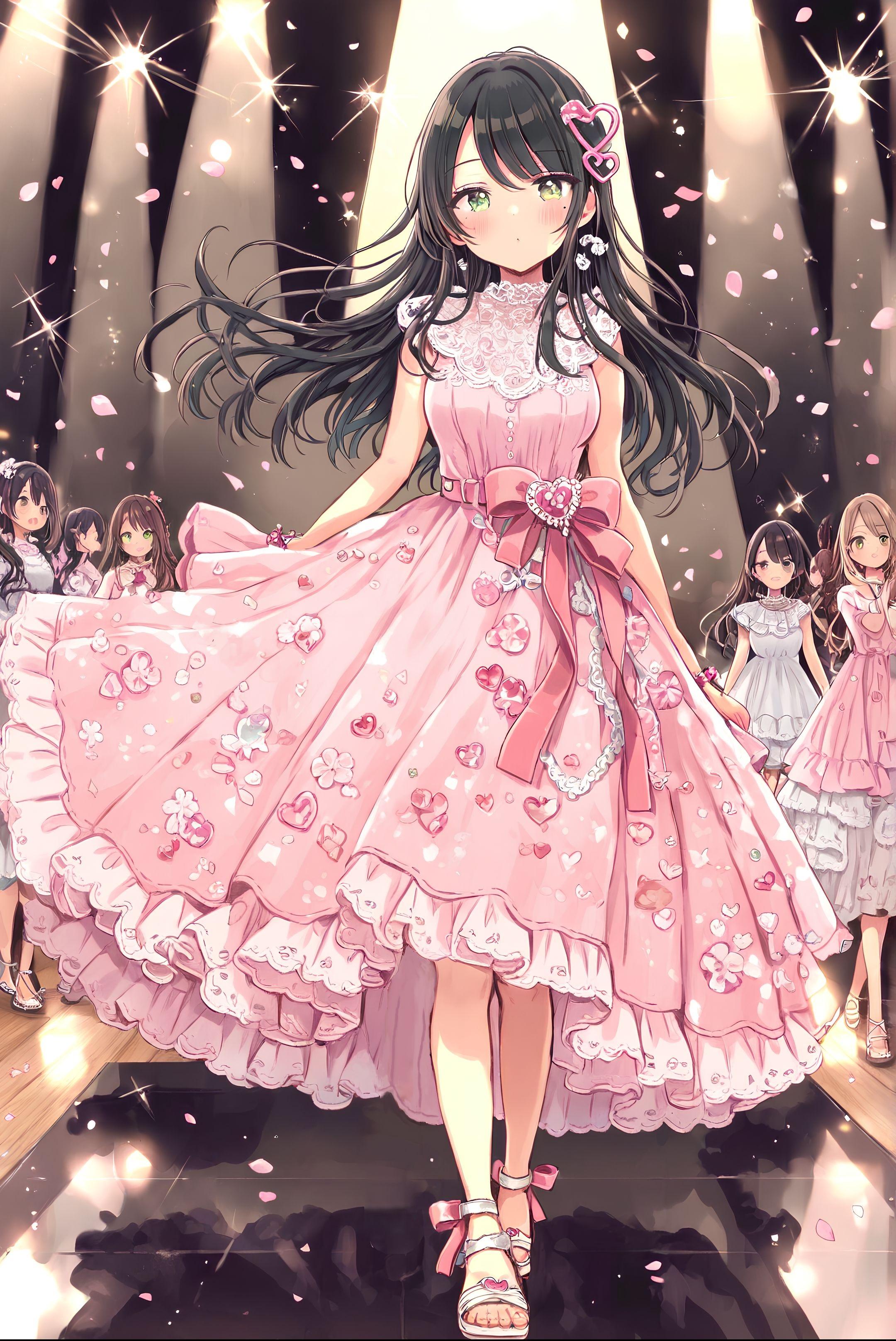 ハートの髪飾りが愛らしいアクセントとなり、全体の雰囲気をさらに引き立てます
