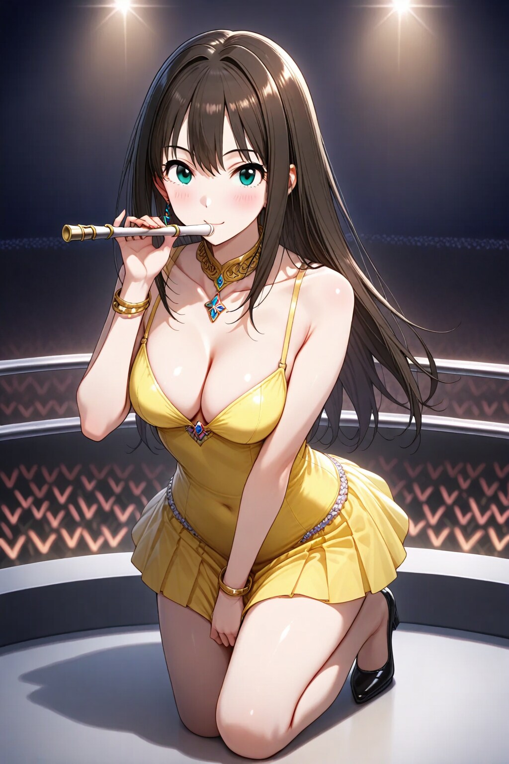 二枚目と三枚目は、「フルート」を演奏させる画像生成を試みたのですが、