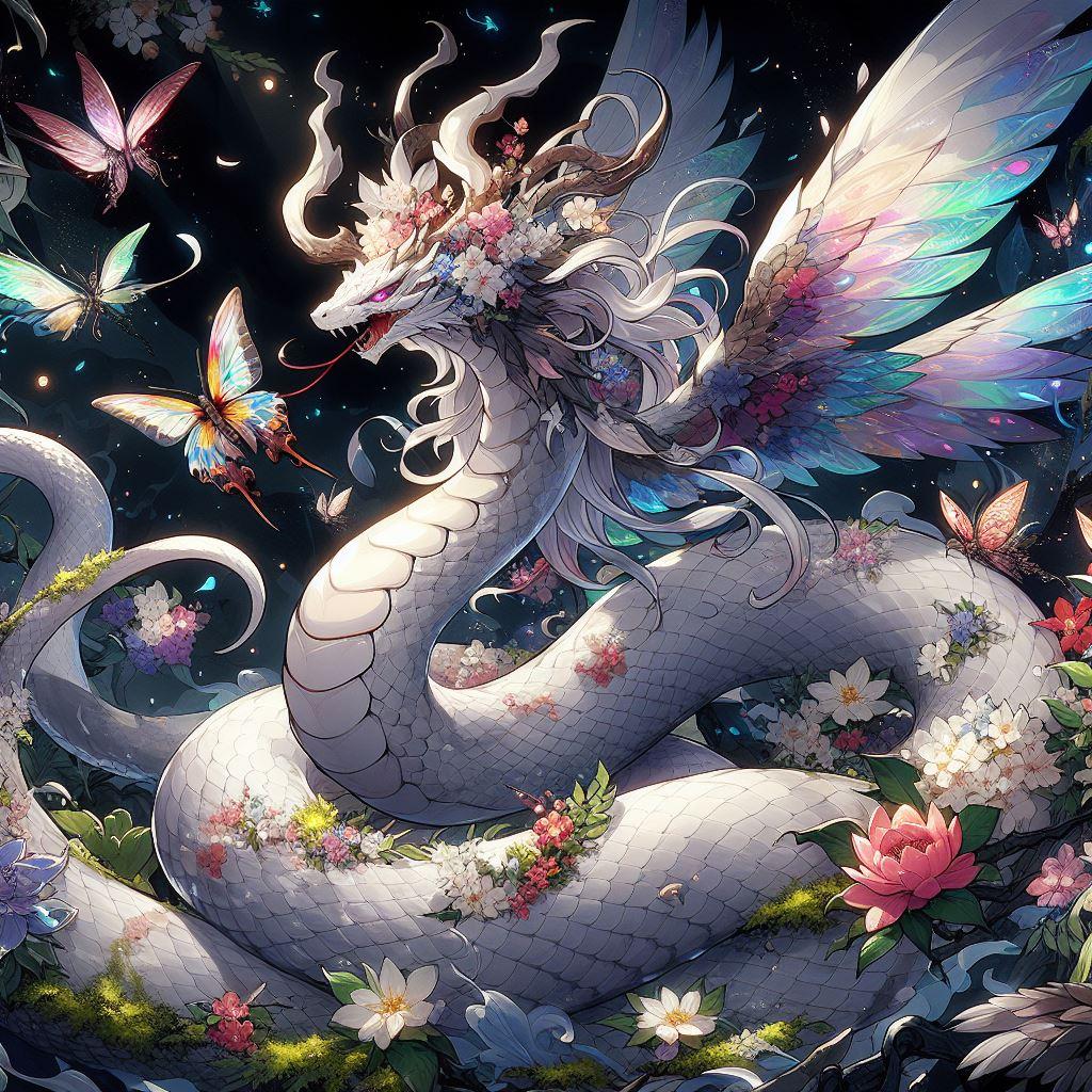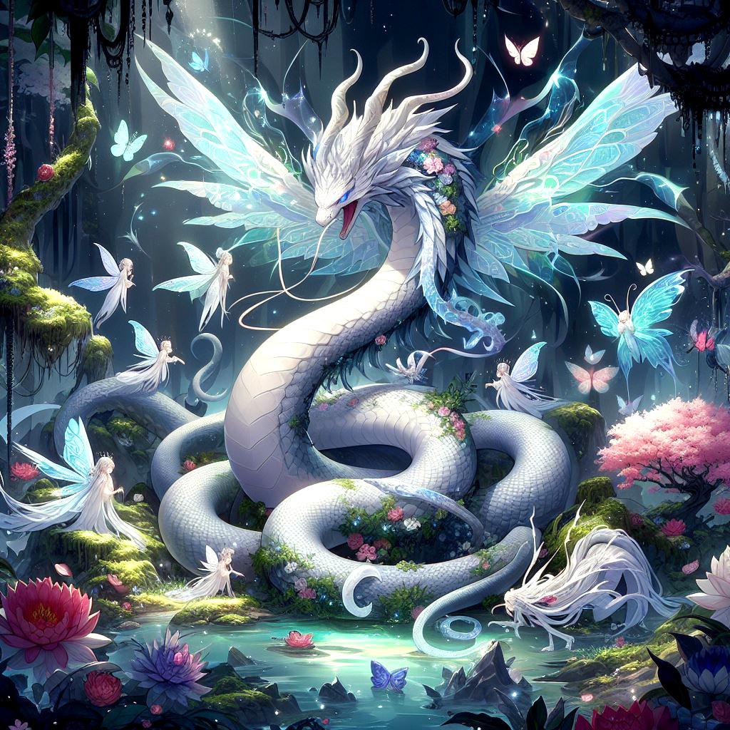 その純白の鱗は美しく 妖艶な羽は光に反射し、