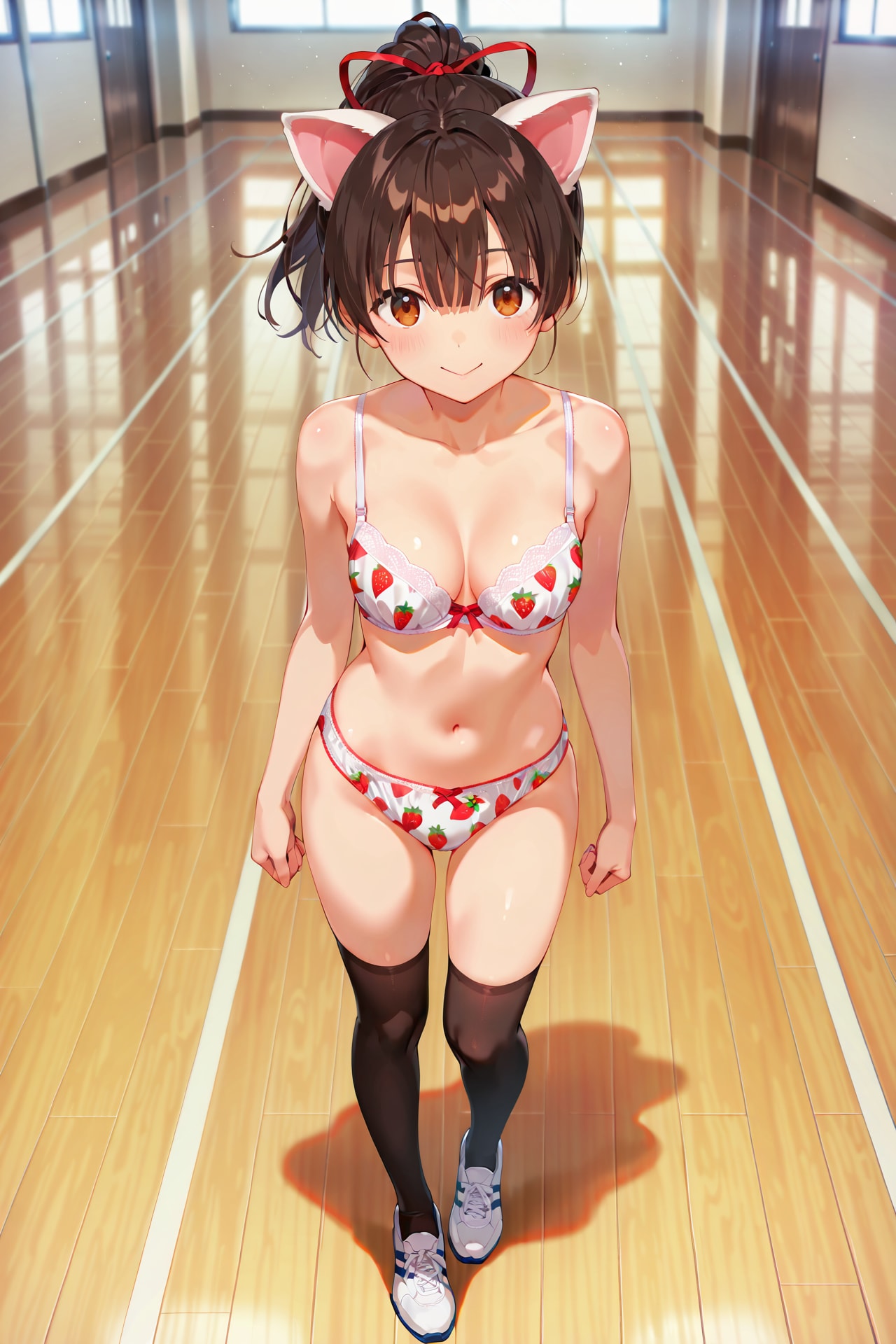 いつもの学校で下着姿の撮影会シリーズですが、今回はネコミミ要素を追加しました。