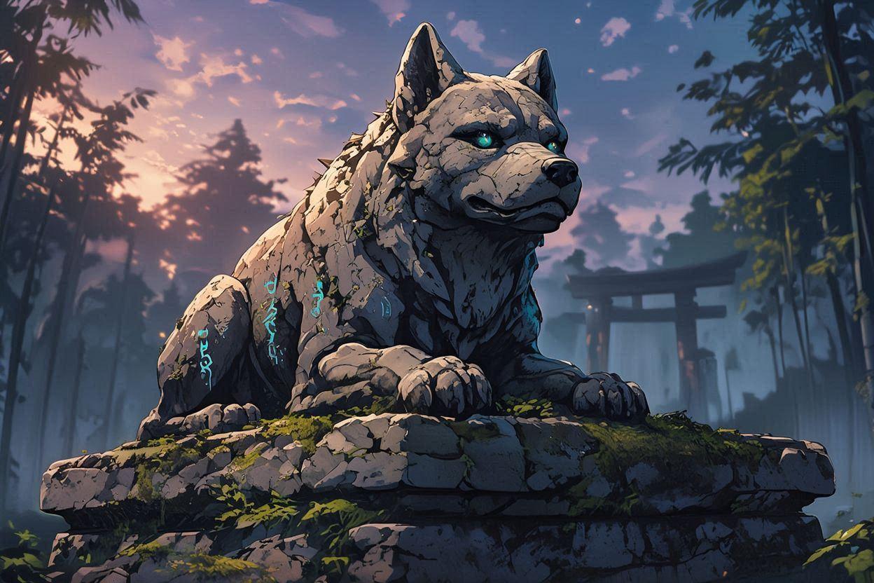 墓石+犬の発想からなのだと思いますが、明らかに岩タイプの精悍な御犬様に見えますね