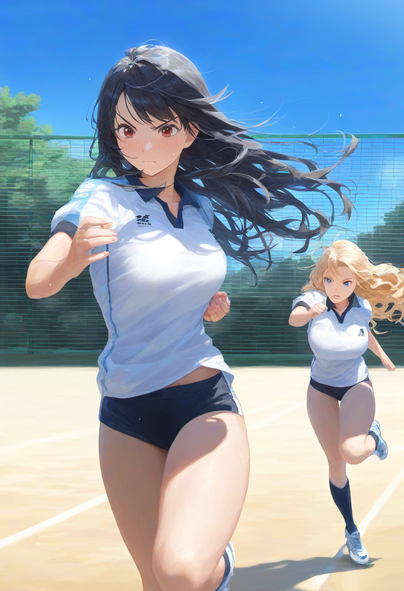 公式タグの「徒競走」、「サッカー」を流用しつつNAIで作成してみました。
