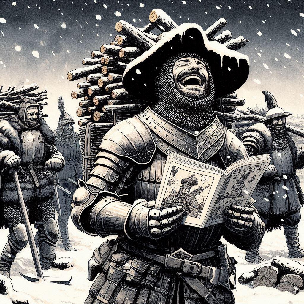 P10 冬支度の騎士。一人だけ漫画読んで爆笑。