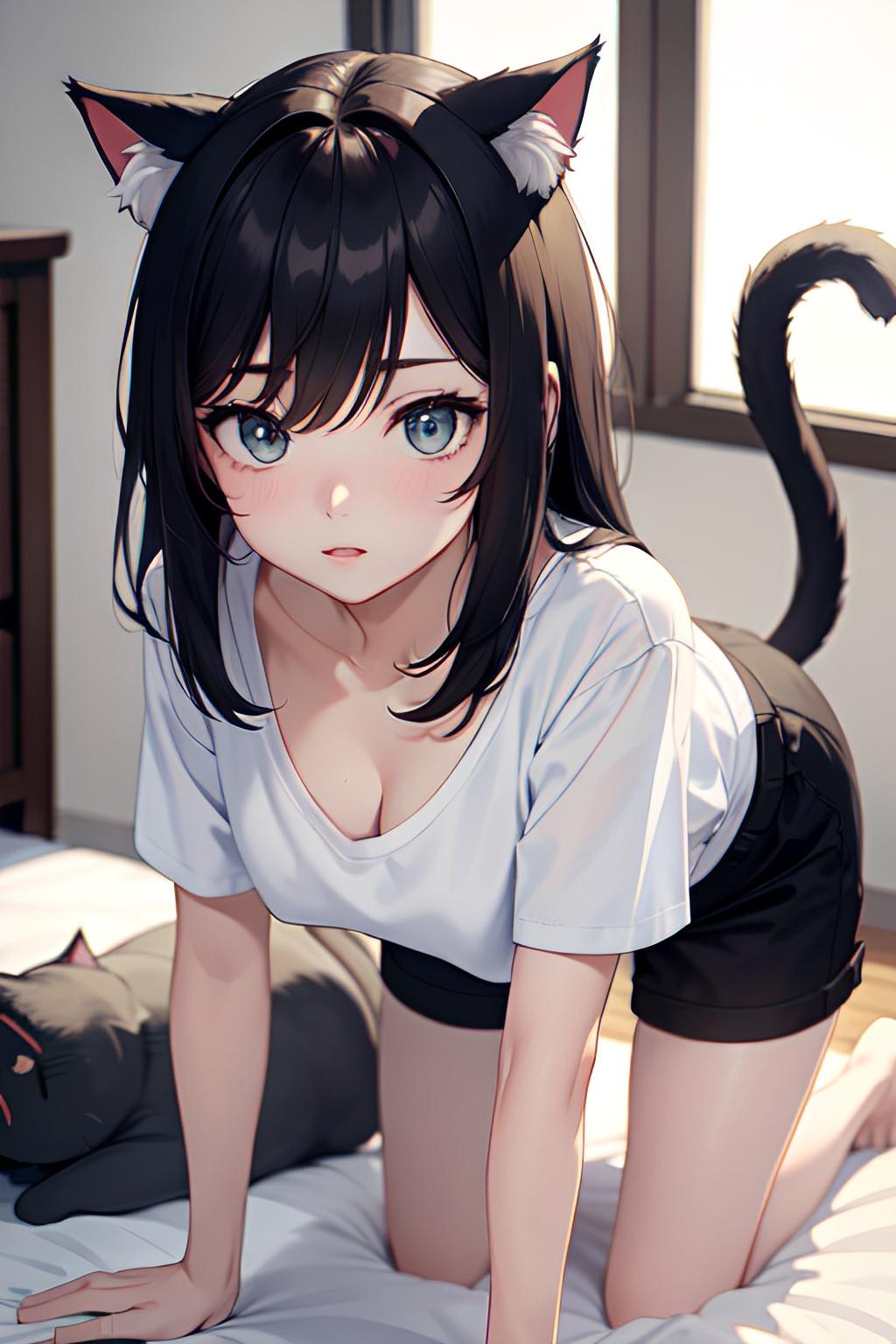 ねこにゃんが四つん這いで可愛いポーズをとっています♪