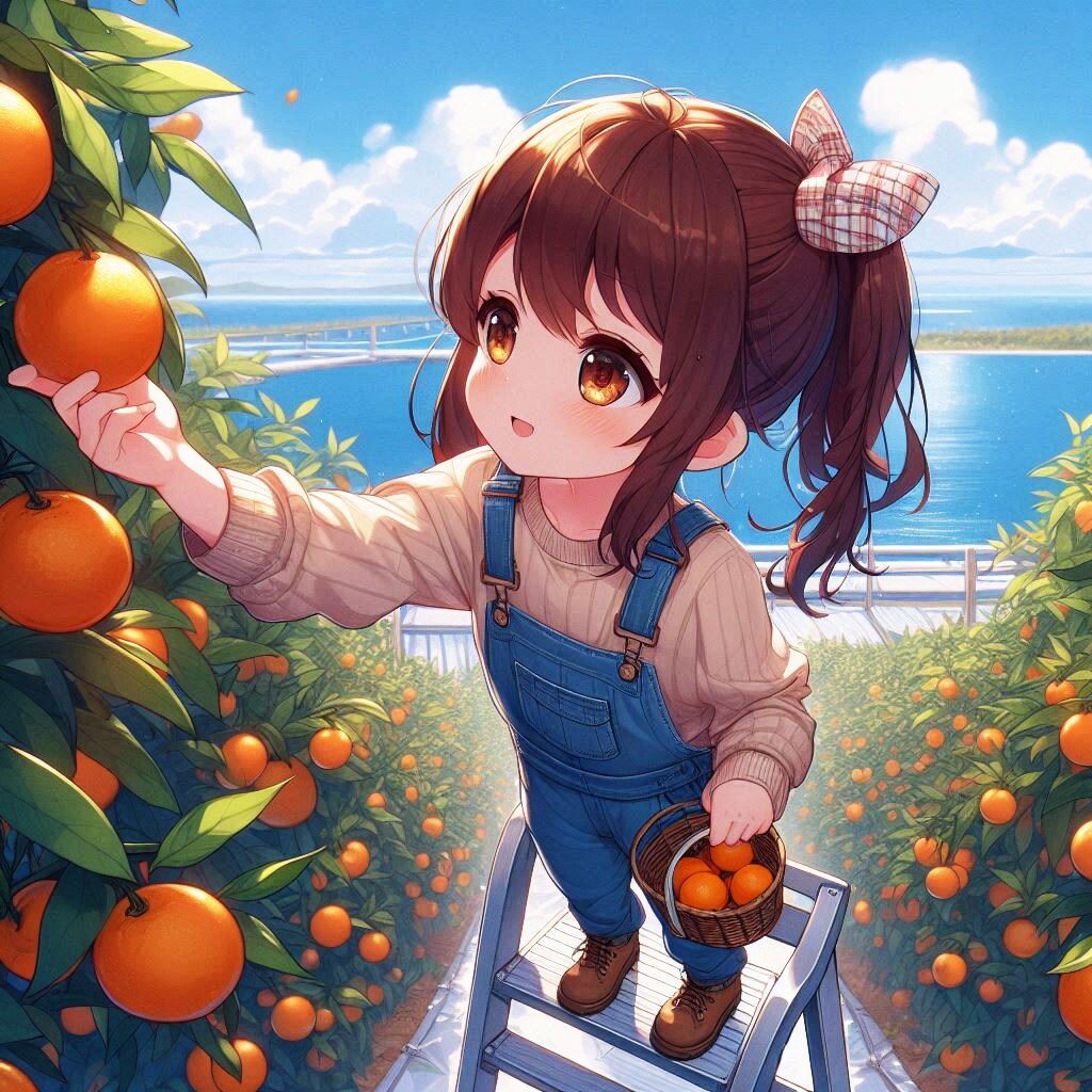 海のそばの小さな山にみかん園があるの。そこでみかん狩りをしたよ!