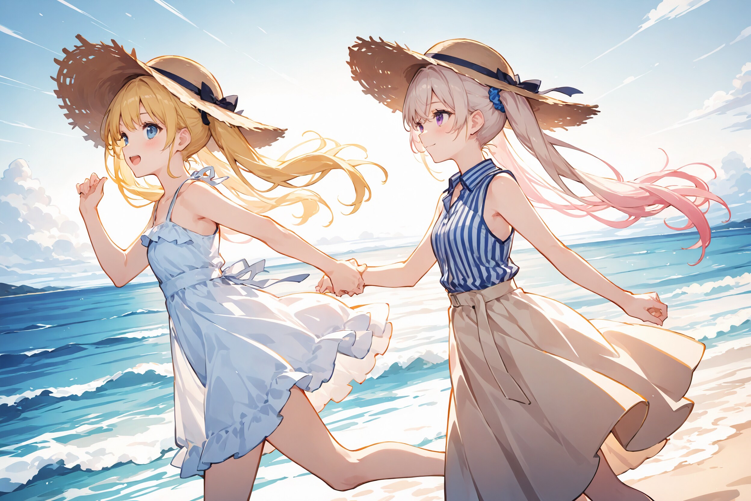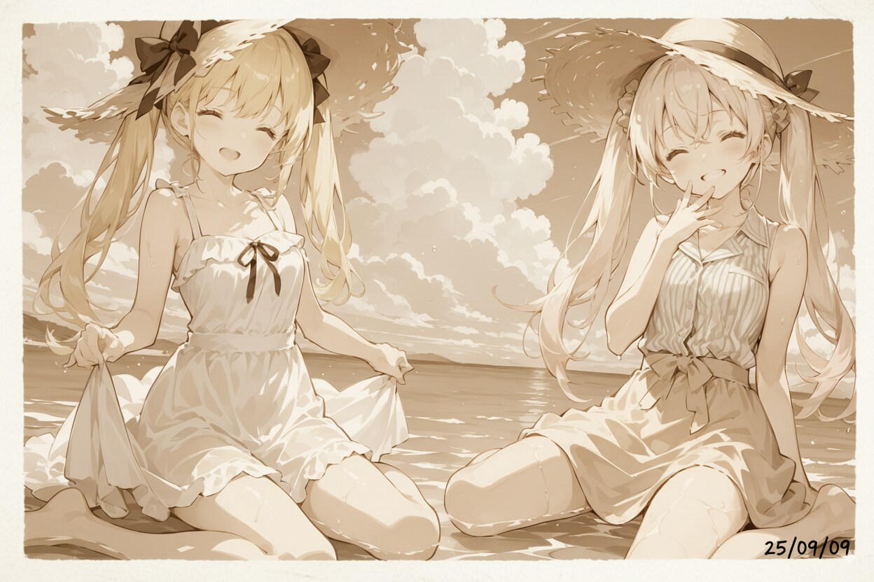 大きな麦わら帽子が風に揺れて、ツインテールがきらきらと光る。