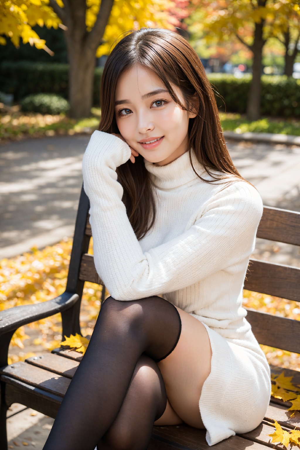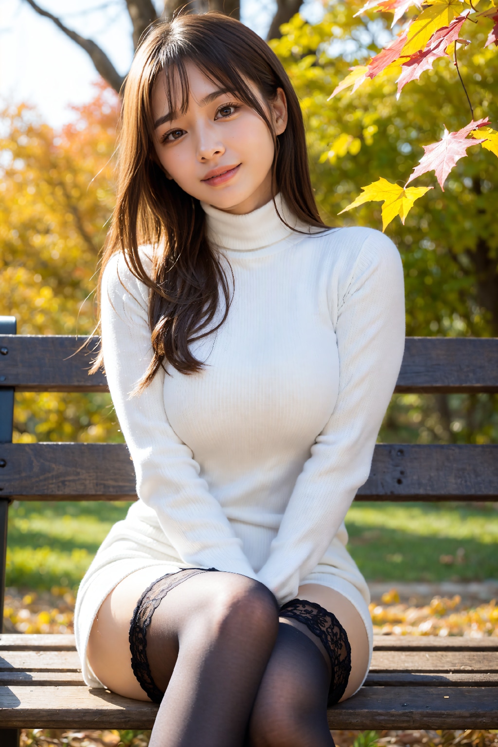 白のニットワンピに黒ストッキングのお姉さんR15版