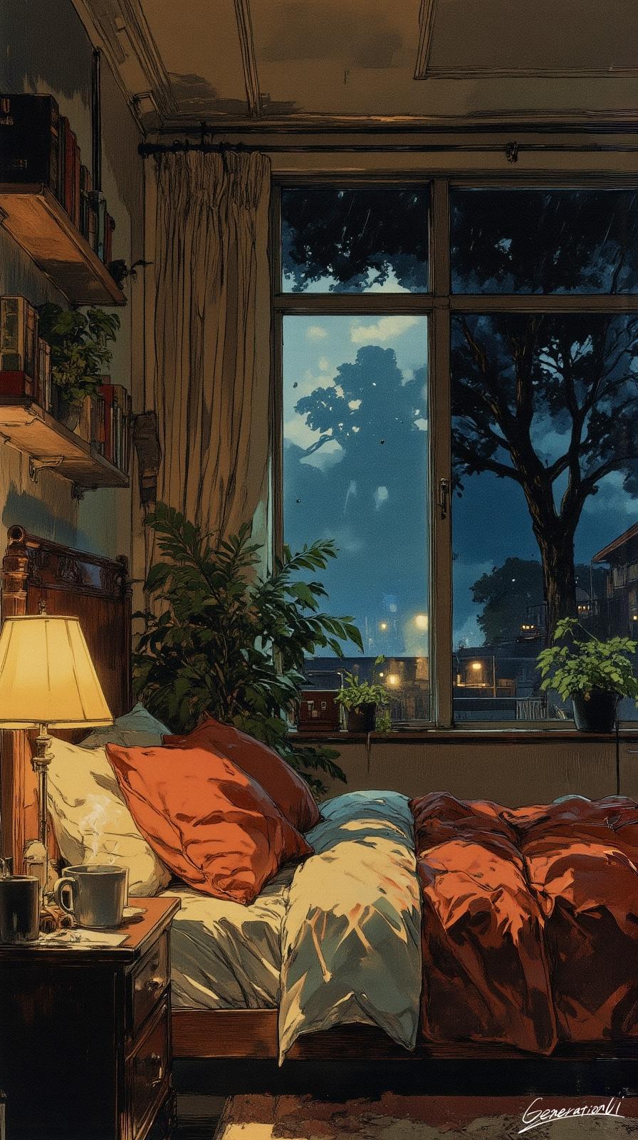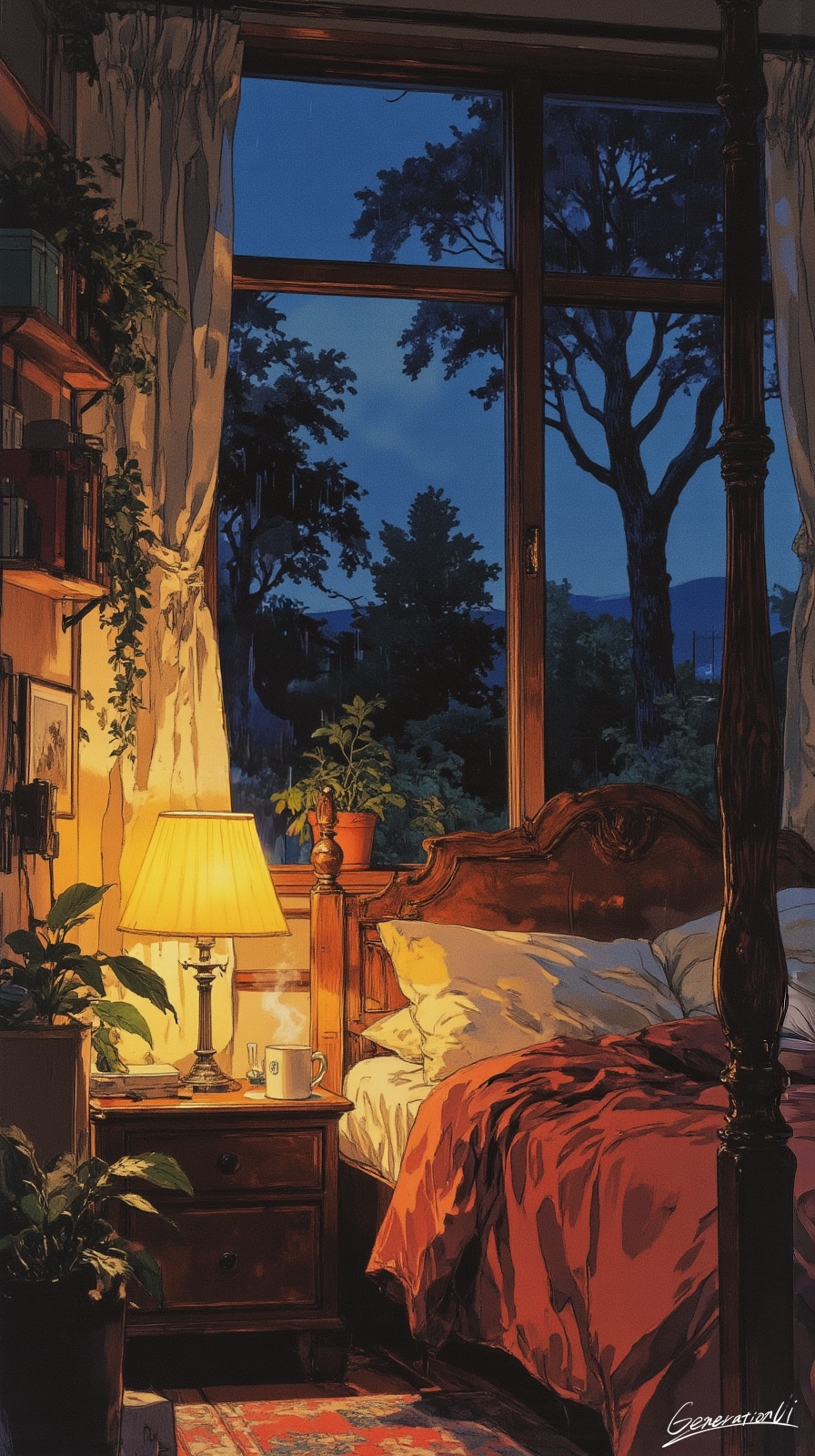 雨音に包まれたベッドルーム/スマホ壁紙アーカイブ
