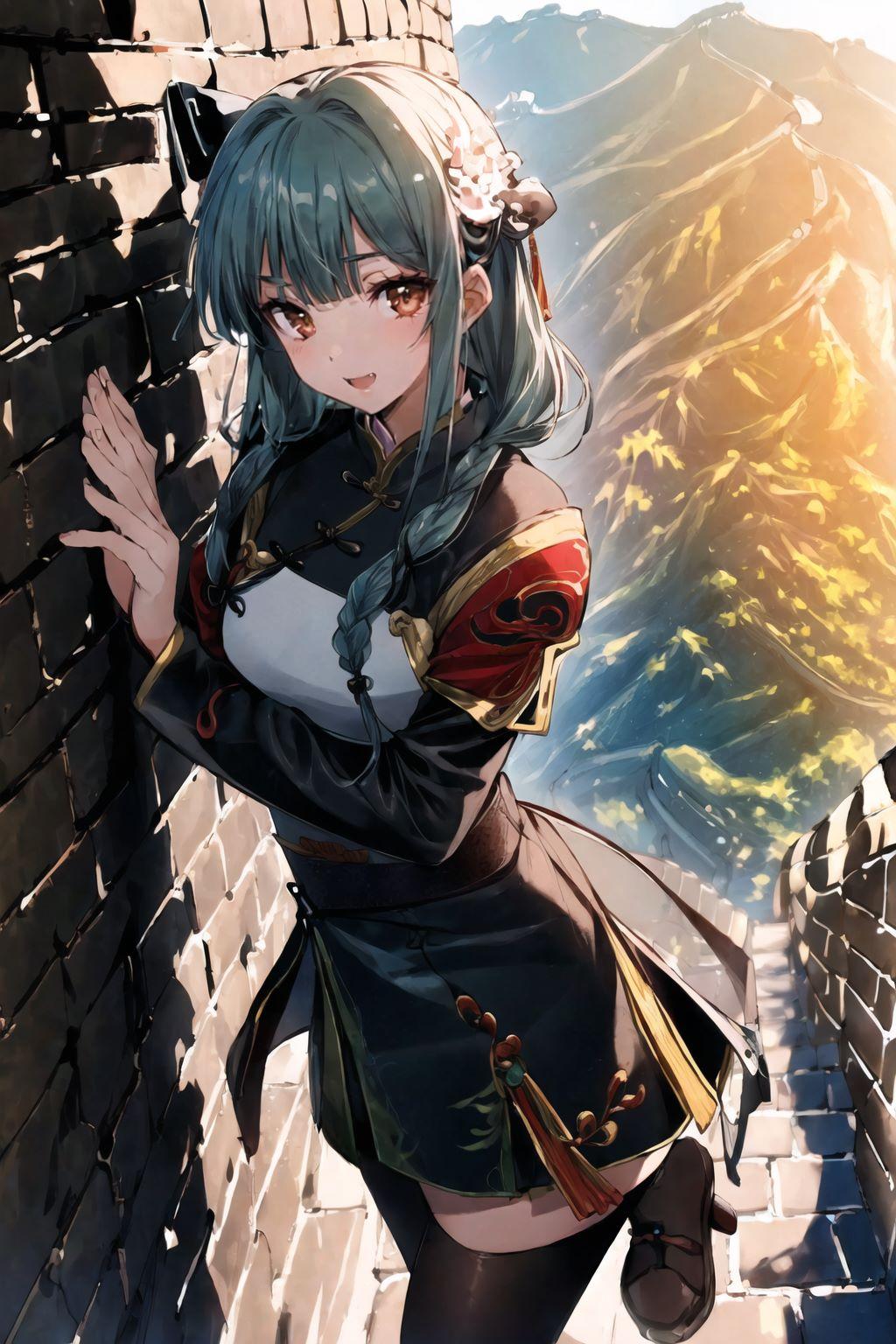 万里の長城があまりに長く、息切れしている様子を描いてみました^^;;