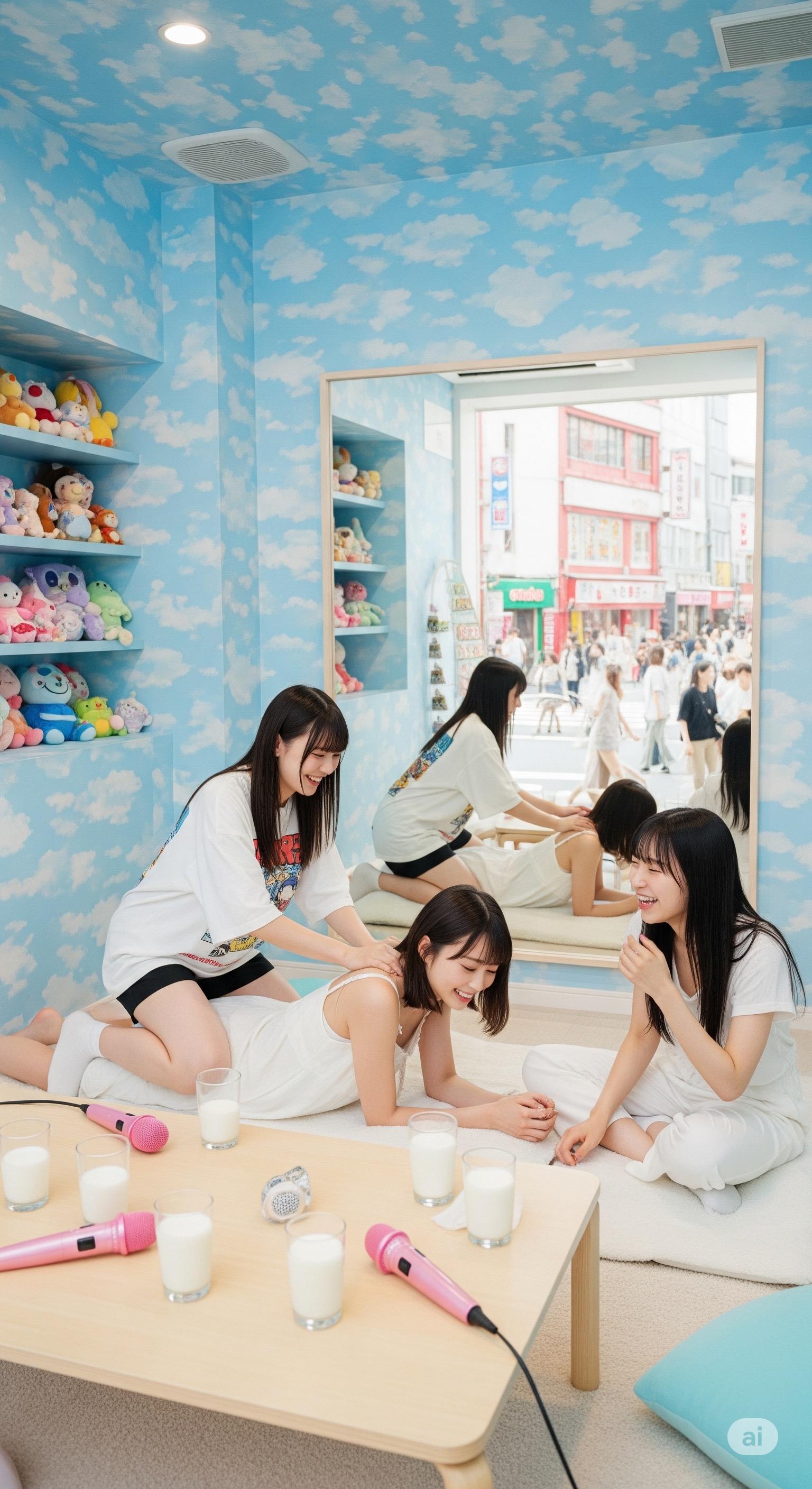 ミルク風呂で射精する巨根ふたなりちゃんたち