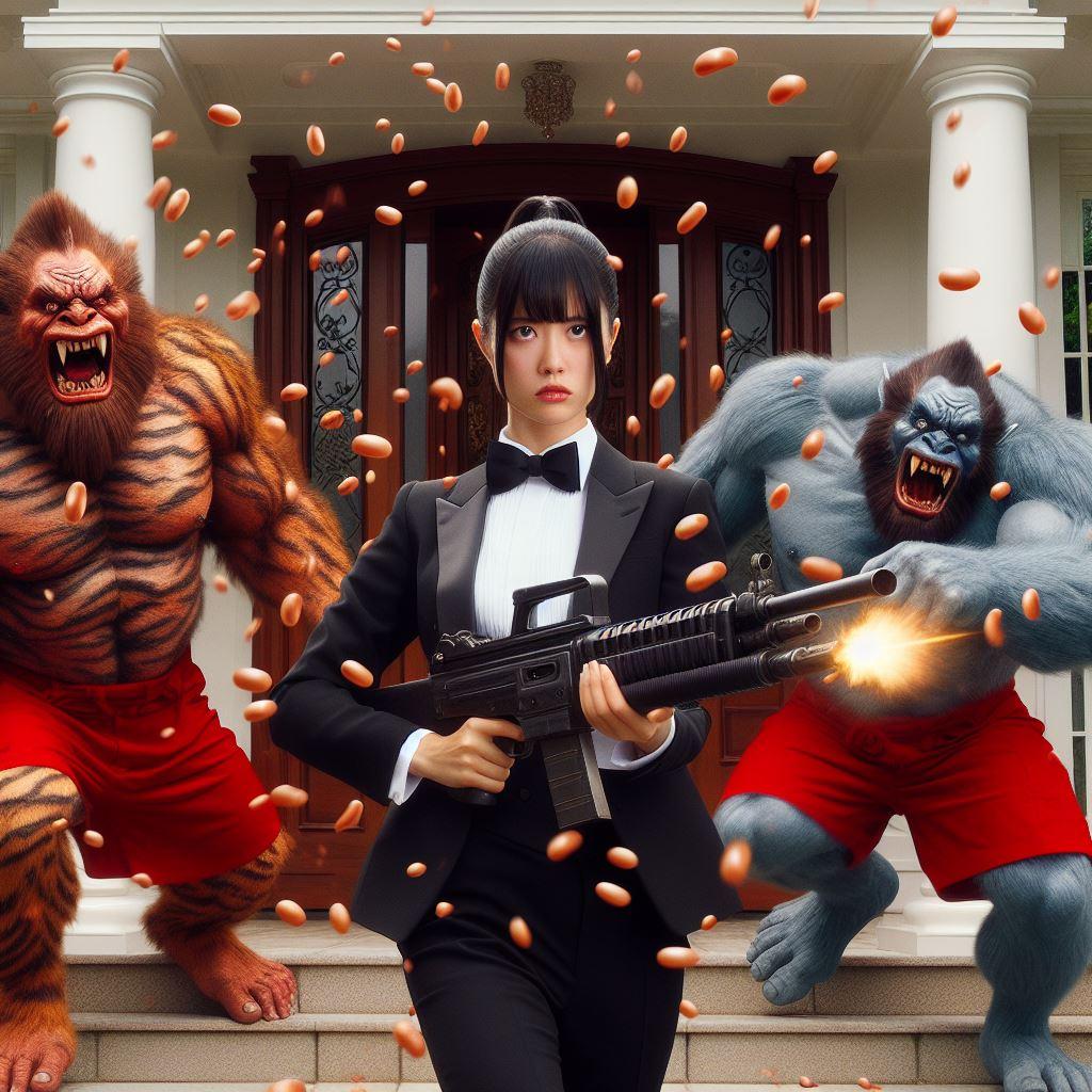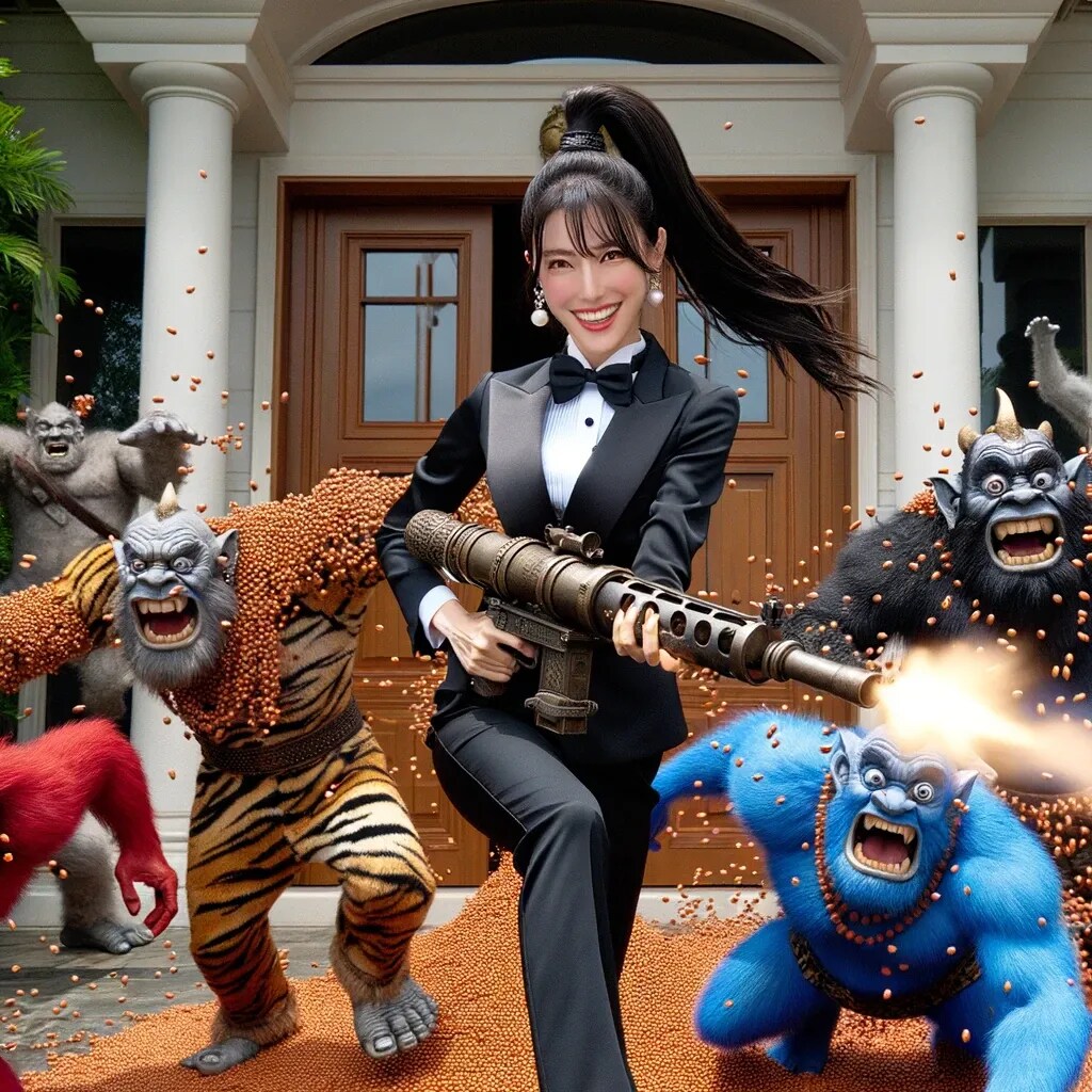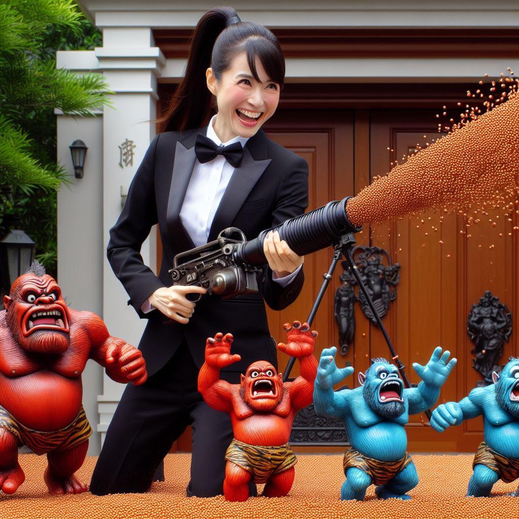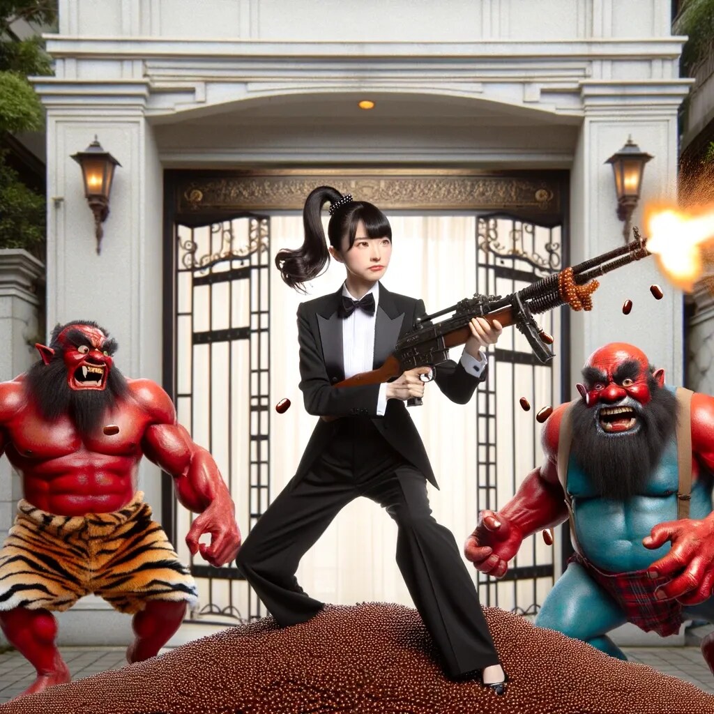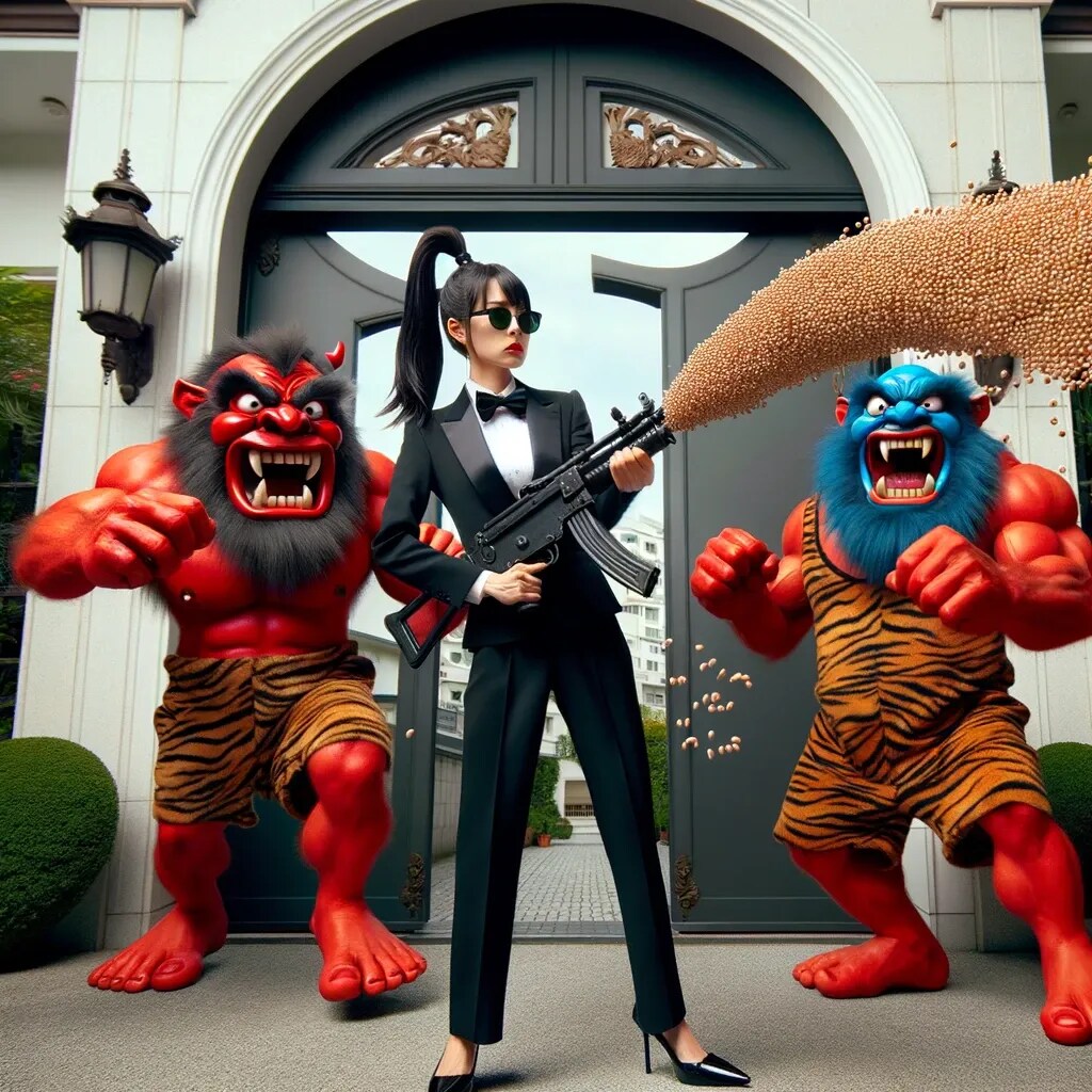召喚獣?の赤鬼、青鬼を豆で退治する執事ちゃん
