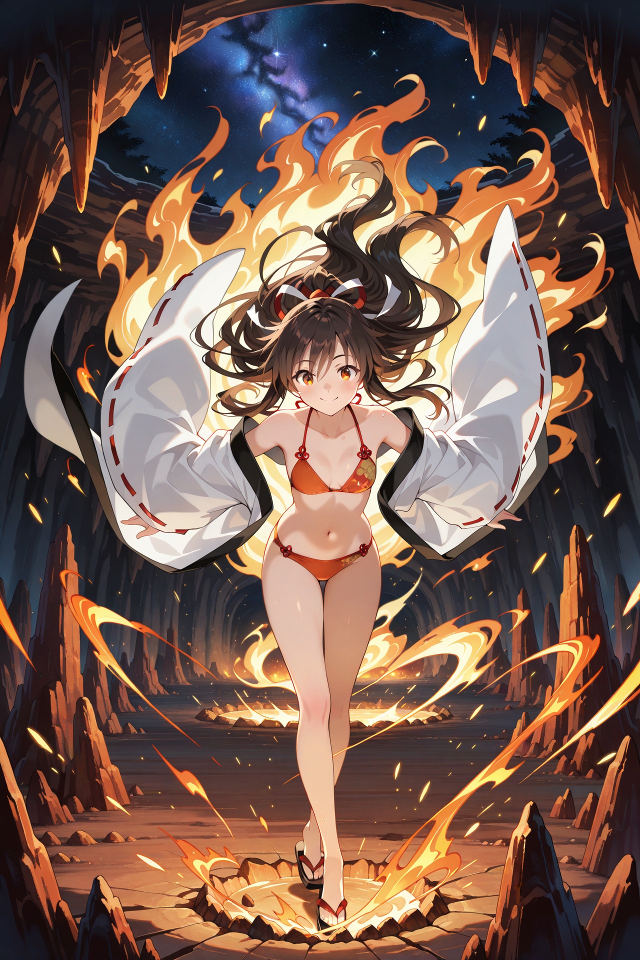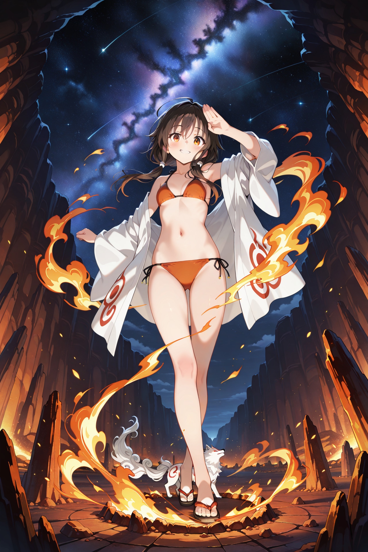 神話によれば素っ裸なのですが、全年齢枠への投稿もあってビキニとかそれなりの服や水着を着てもらいました。