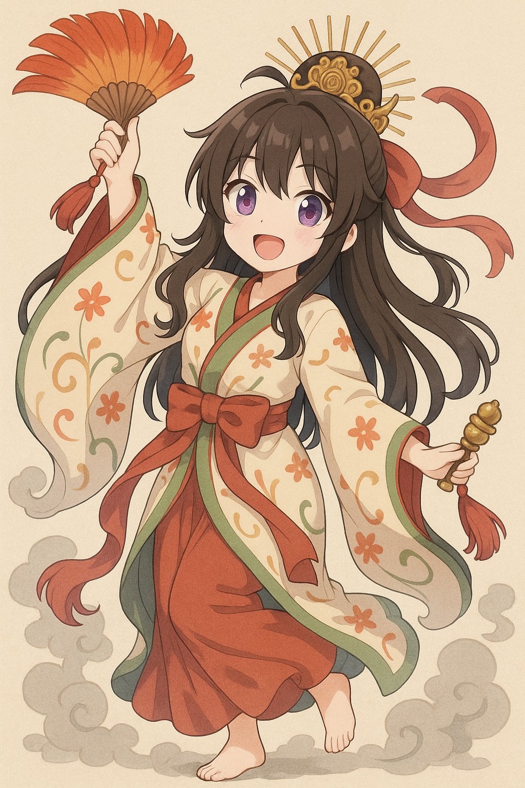 2枚目は、まずはChatGPTに天鈿女命の絵を描いて貰いました。ここからスタートです。