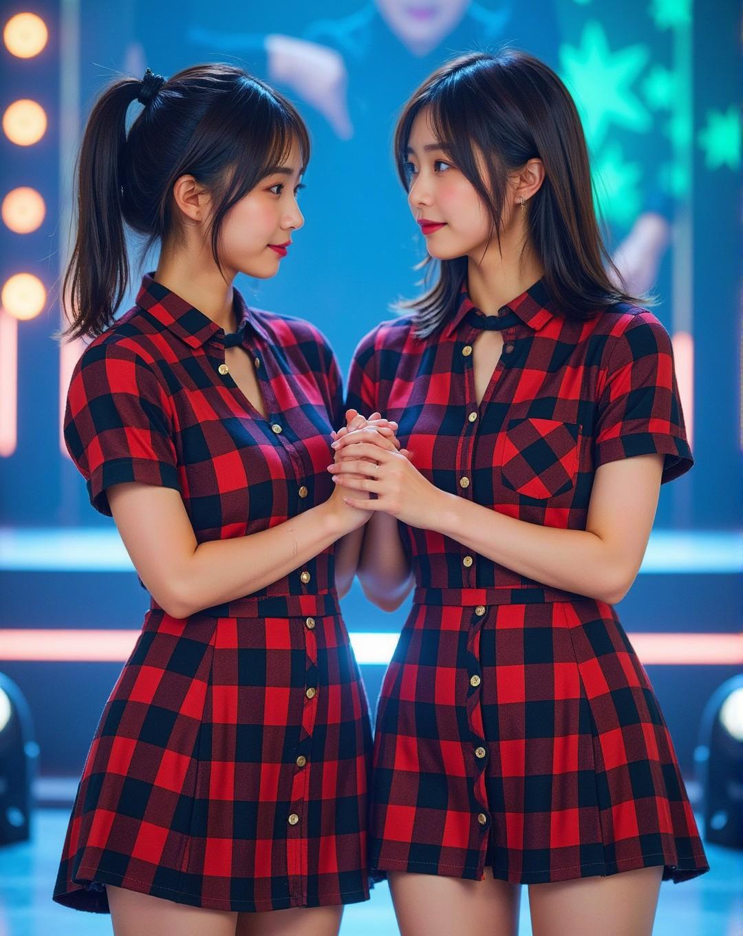 人気アイドルグループのLIVEイベント写真撮影会風(複数人女性)