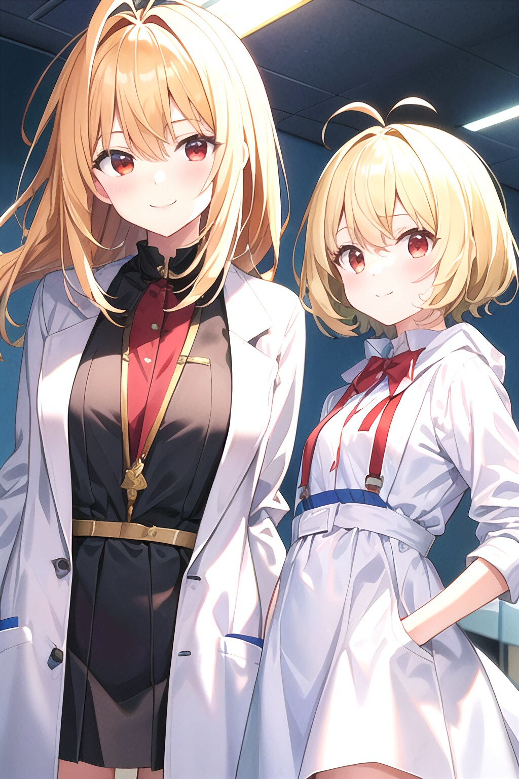ナツキがナース姿でふざけて「患者さん、診察するばい〜!」とカメラに向かってポーズ。(ナツキの方が年上に見える)