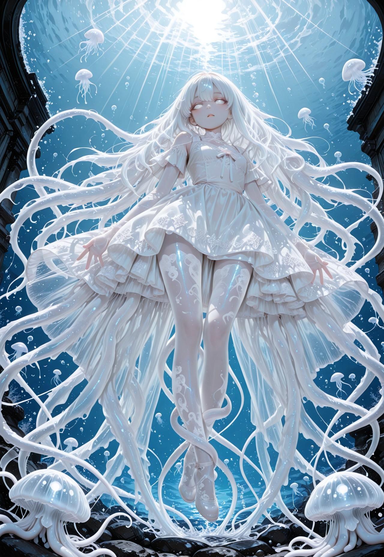 涼しげなイメージという事で、クラゲ少女を作りたくて色々試した結果…想像以上にアレなスカートが…